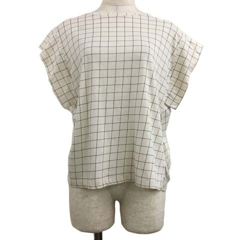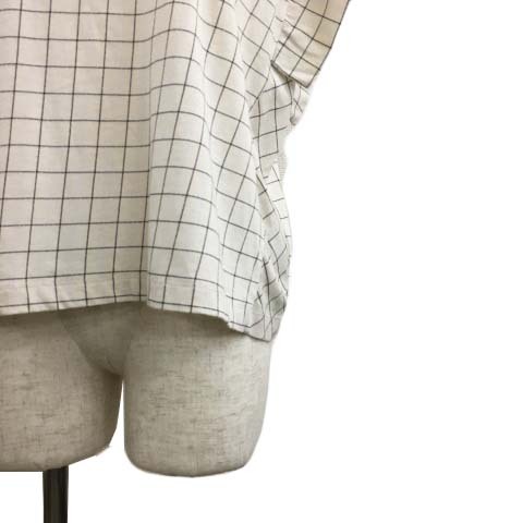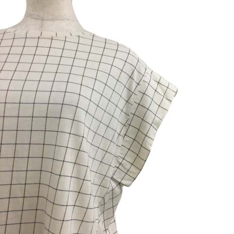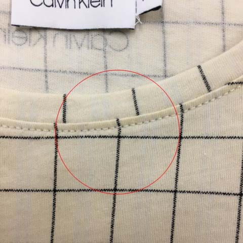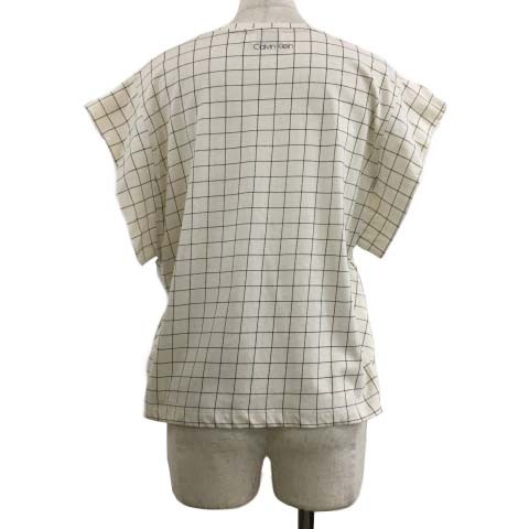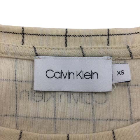 カルバンクライン カットソー Tシャツ プルオーバー クルーネック 格子 チェック プリント ロゴ フレンチスリーブ XS ベージュ 黒 ブラック