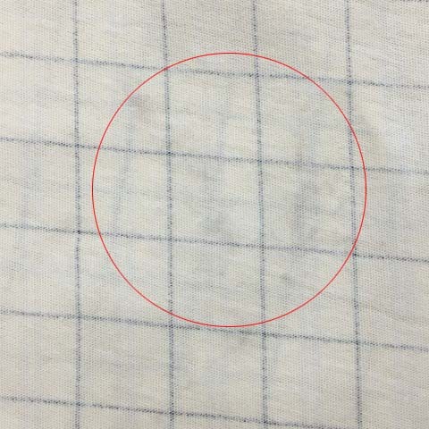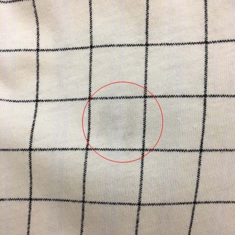 【状態】前の首周り中央に薄い汚れがあります。 右鎖骨に黒い汚れがあります。 後ろの左裾上裏に黒い汚れがあります。裏に同様の汚れは他にも複数あります。 ご理解の上お買い求め下さいませ。