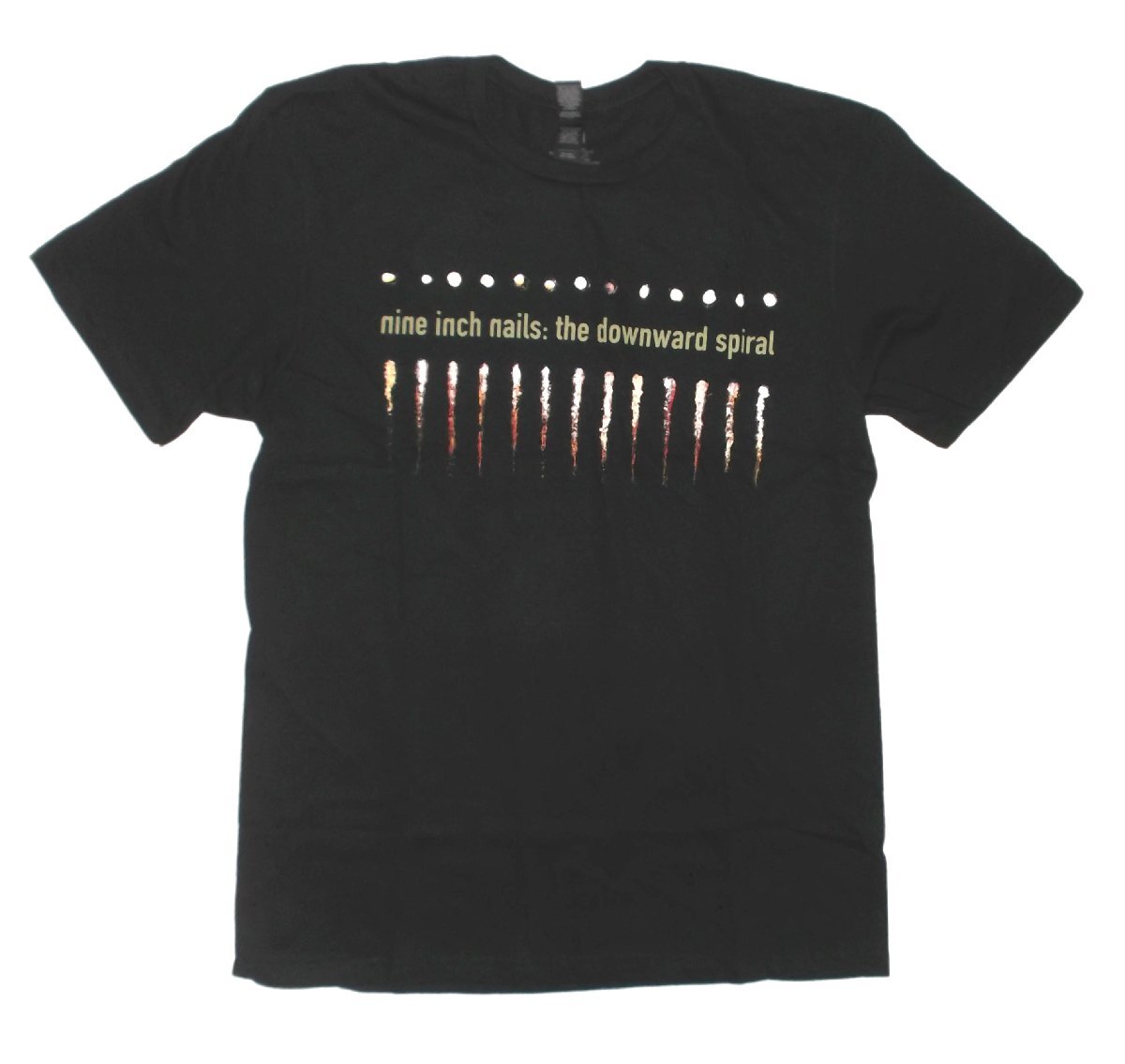 | NINE INCH NAILS, Salt & Teeth MENS LIGHTWEIGHT T-SHIRT 正規品 NINE INCH NAILS UNISEX T-SHIRT: DOWNWARD SPIRAL (BACK PRINT) 正規品 The Downward Spiral Lp Logo With Salt & Teeth Trail 1989年にシングル「ダウン・イン・イット」でデビュー、斬新で精密なサウンドやビジュアル・ワーク、 過激なステージでインダストリアル・ロックをオーバーグラウンドに持ち上げた「ナイン インチ ネイルズ 」のTシャツです。 スキニー・パピー、ピーター・マーフィー、ジーザス&メリーチェインナインとともに行った最初の北米ツアーでの破壊的なステージング、 MTVなどでは放送禁止となったBroken Movie、ウッドストック 1994での泥まみれのパフォーマンス、 デヴィッド・ボウイとのコラボetcと様々な話題を撒き散らし、ナイン インチ ネイルズの世界観は後進のアーティストに大きな影響を与え続けています。 ブラックボディーのフロントに94年リリースの傑作2ndアルバム『The Downward Spiral』モチーフ! バックには「NIN」ロゴ(3文字目のNが左右反転され、「NIИ」に似たアンビグラムになっている)入りです。 新品・正規品 Sサイズ 細身の170cm前後の方に良いかと思います。肩幅40cm,着丈70cm,身幅44cm メール便送料¥250(代引き不可・紛失補償なし) THRASHER、Sailor Jerry、LUCKY13、アメキャラ、ムービー等ライセンスTシャツ、RATFINK関連品、バンドTシャツ等取り扱っております。 ** 他にも色々出品中です。 CWbm IWTS | |||||||