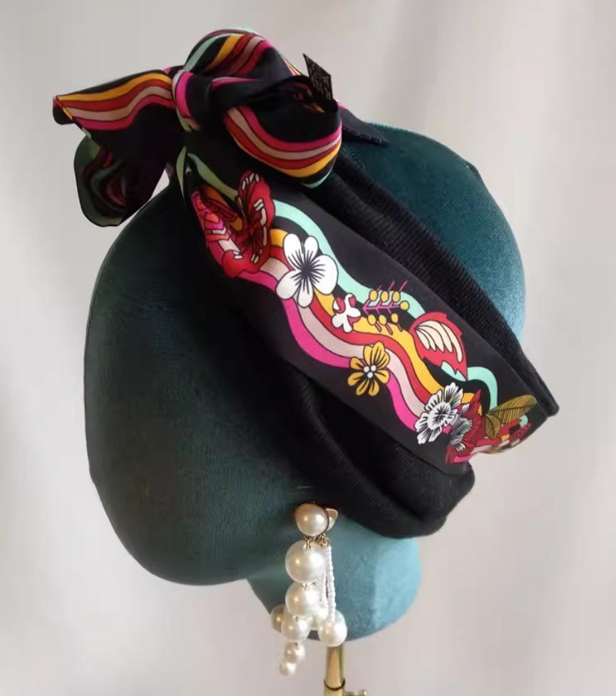 スカーフ柄のリボンがアクセントになって