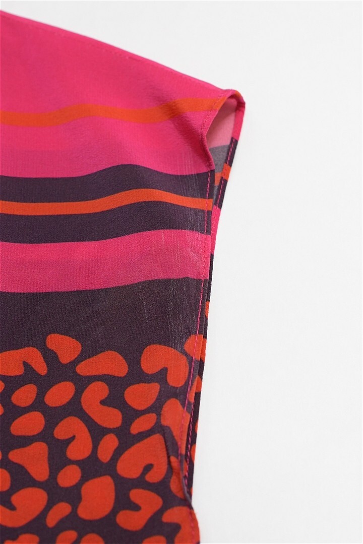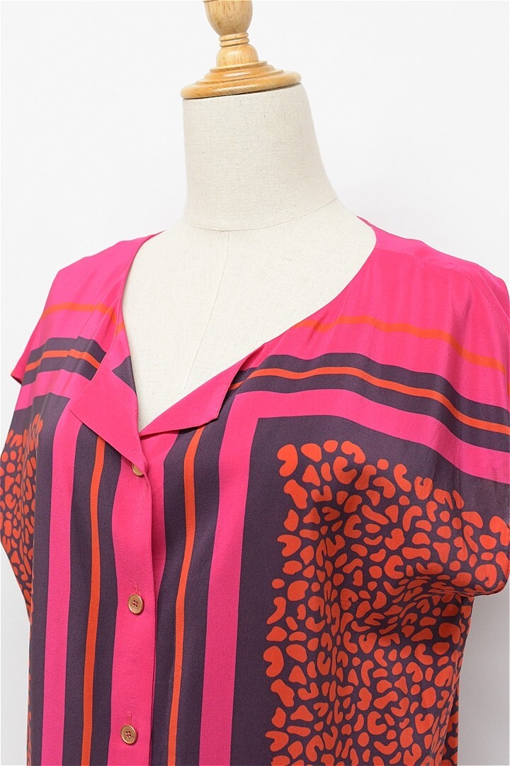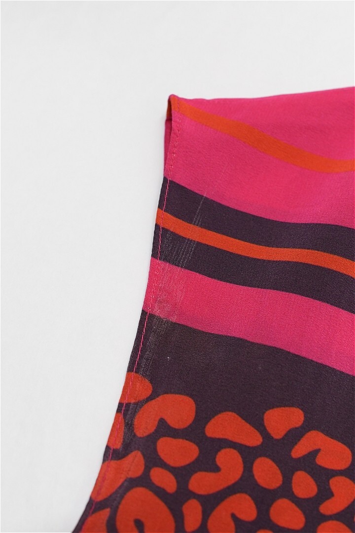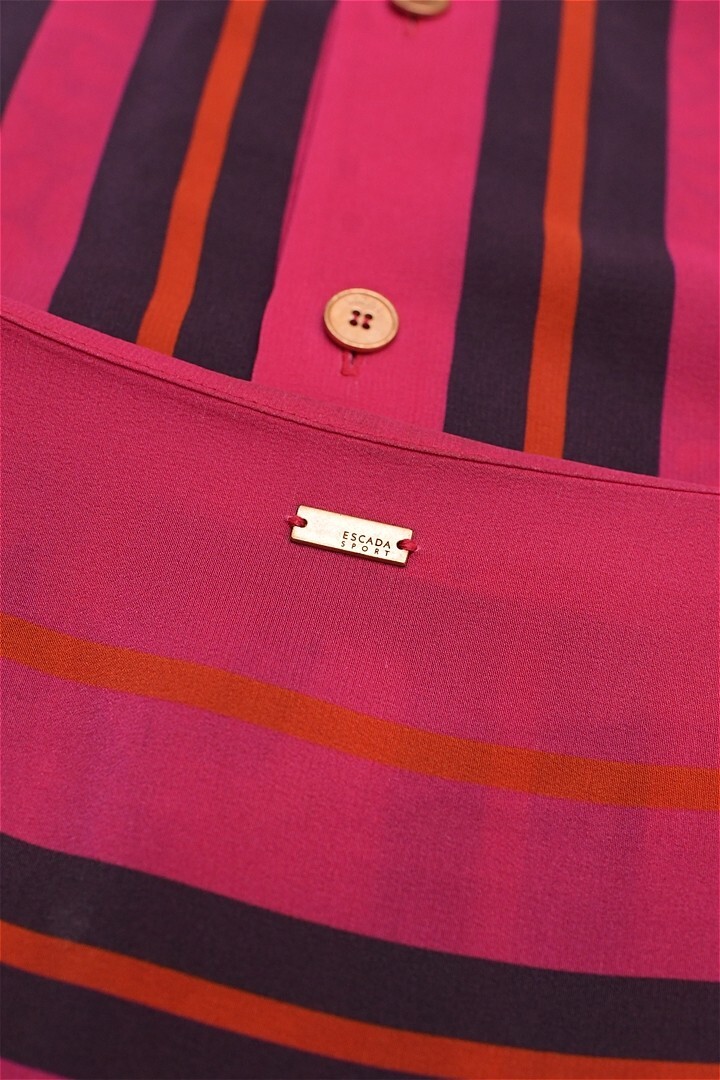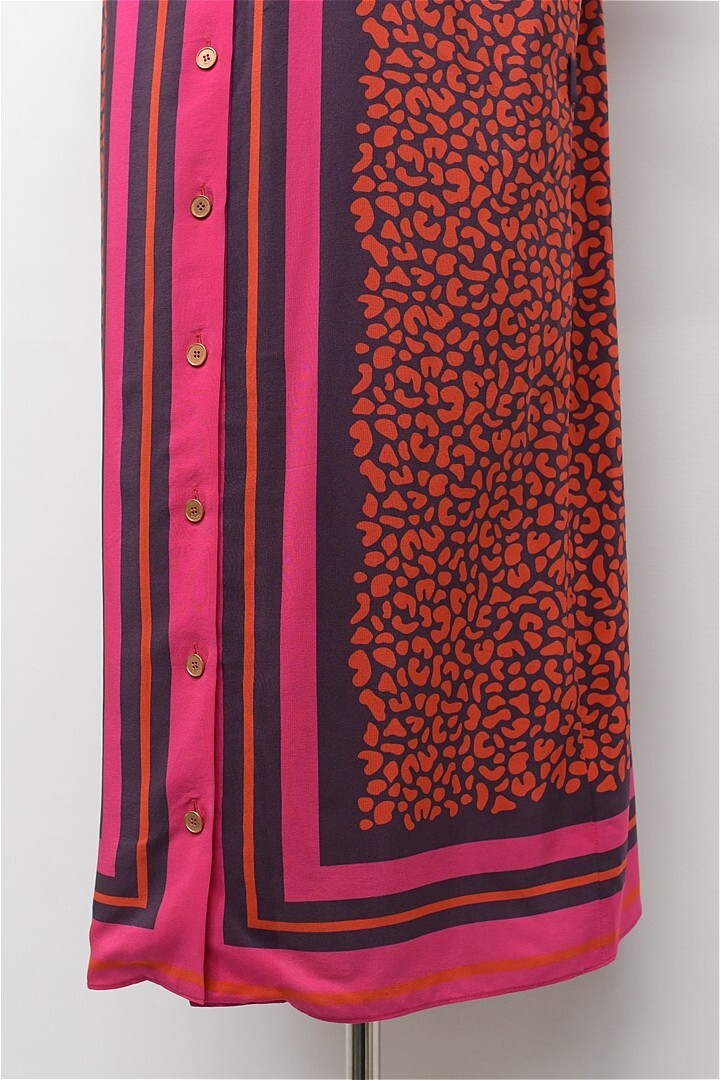 R-K380/ESCADA ひざ丈ワンピース ドレス シルク 総柄 羽織 薄手 ロゴプレート 36 M~L ピンク 赤