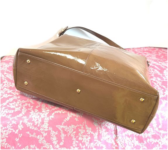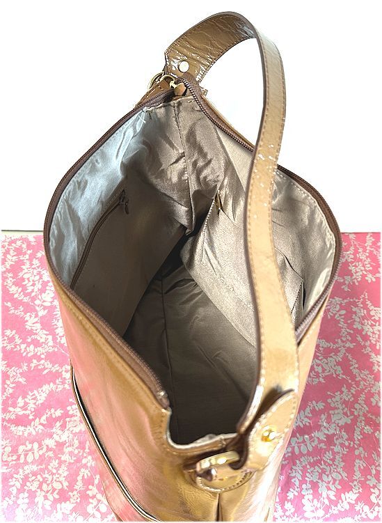 値下★HAMANO 傳濱野・皇室御用達★エナメル本皮・ワンハンドル・ショルダー・バッグ・ゴールドブラウン★美品