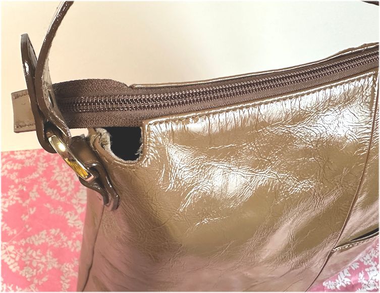 ◎たっぷりと入りつつ、すっきりと脇下に収まやすい、しなやかなエナメルレザーのバッグです。外側にポケットには携帯電話も入れられて便利ですよ。お色も上品で、あらゆるカラーとの調和もしやすく、毎日のお供にもしやすいと思います。いかがでしょう★