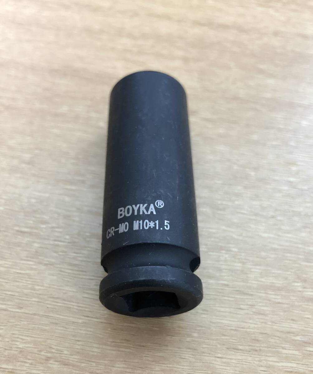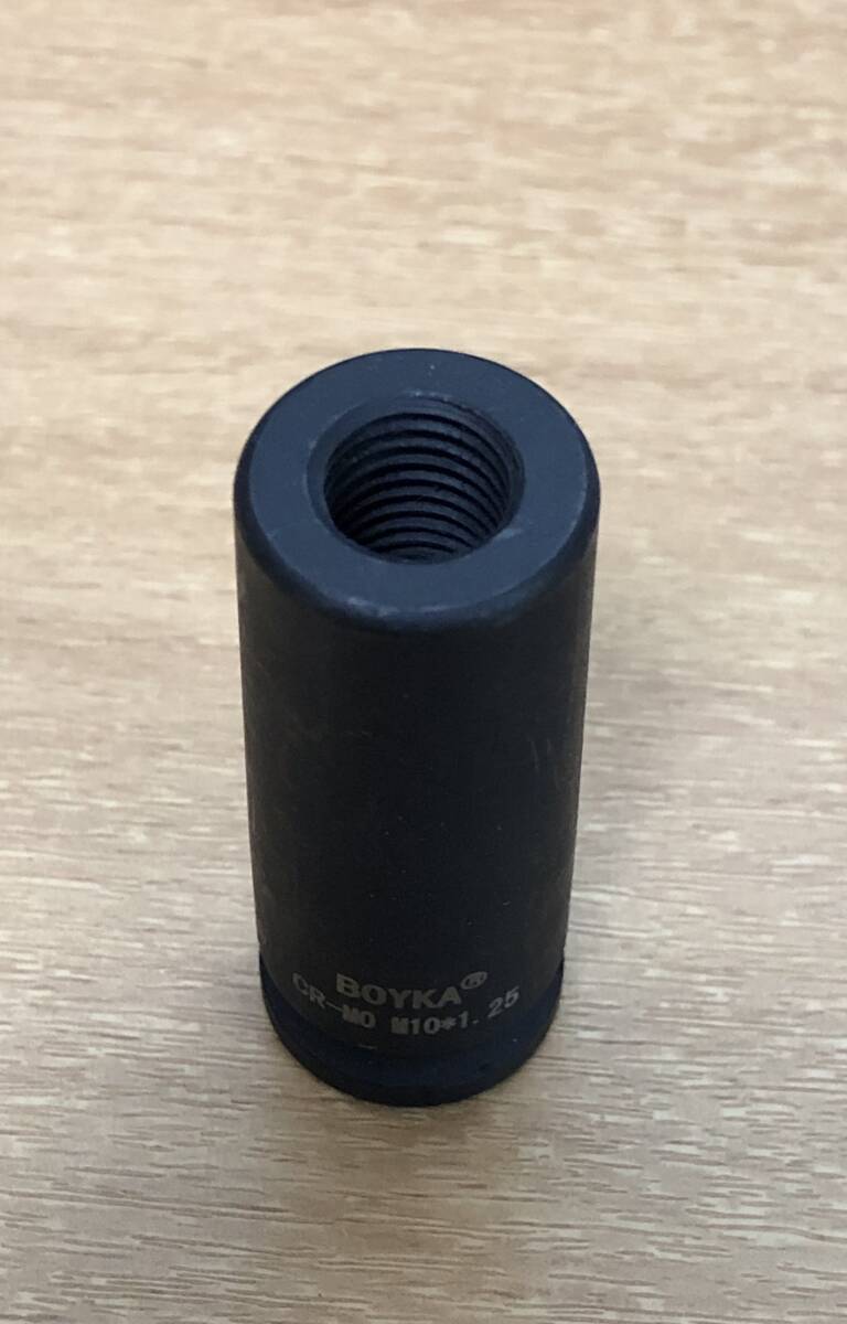 スタッドボルト挿入時のダブルナット作業が不要となる挿入専用ソケットです。 [差込角] 3/8"(9.5mm) [サイズ] M10x1.5 [全長] 50mm [ボルト挿入部深さ] 13mm *対象スタッドボルトの材質、硬度、形状、締付トルク等の使用環境によってはスタッドボルト端面に鋼球が接触した跡が付いたり、 スタッドボルトセッターがかみ込んだりすることがあります。