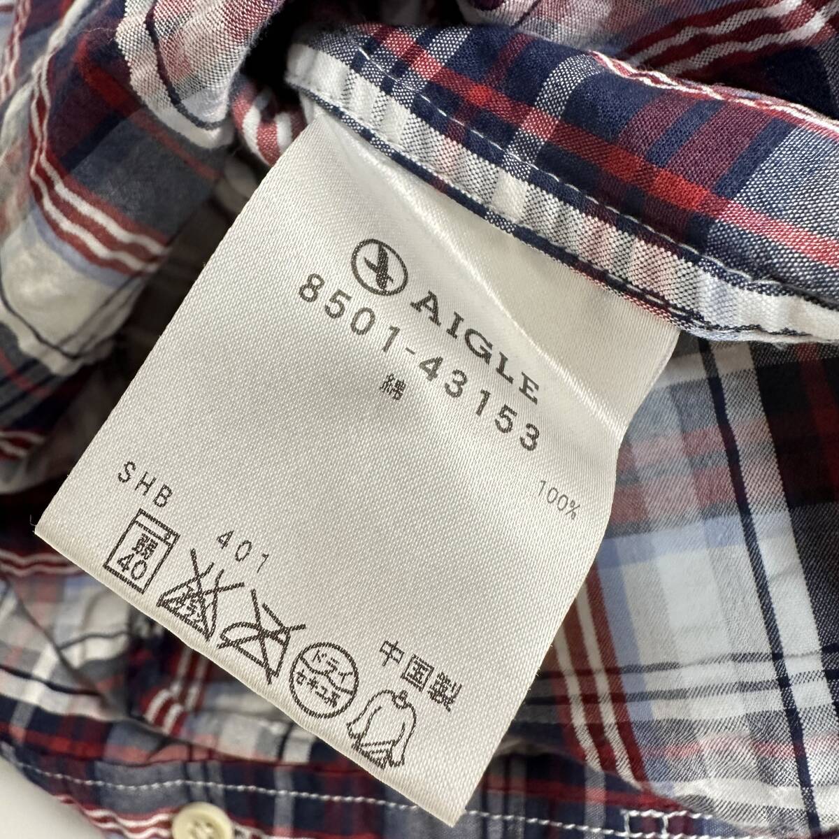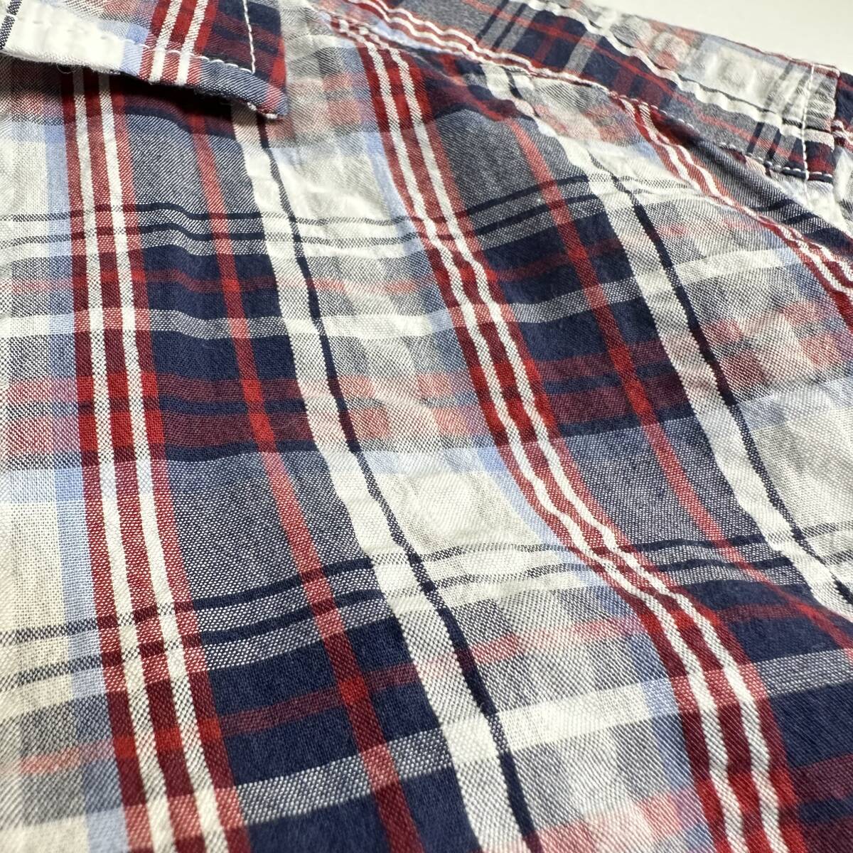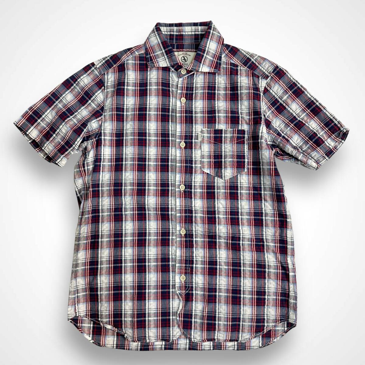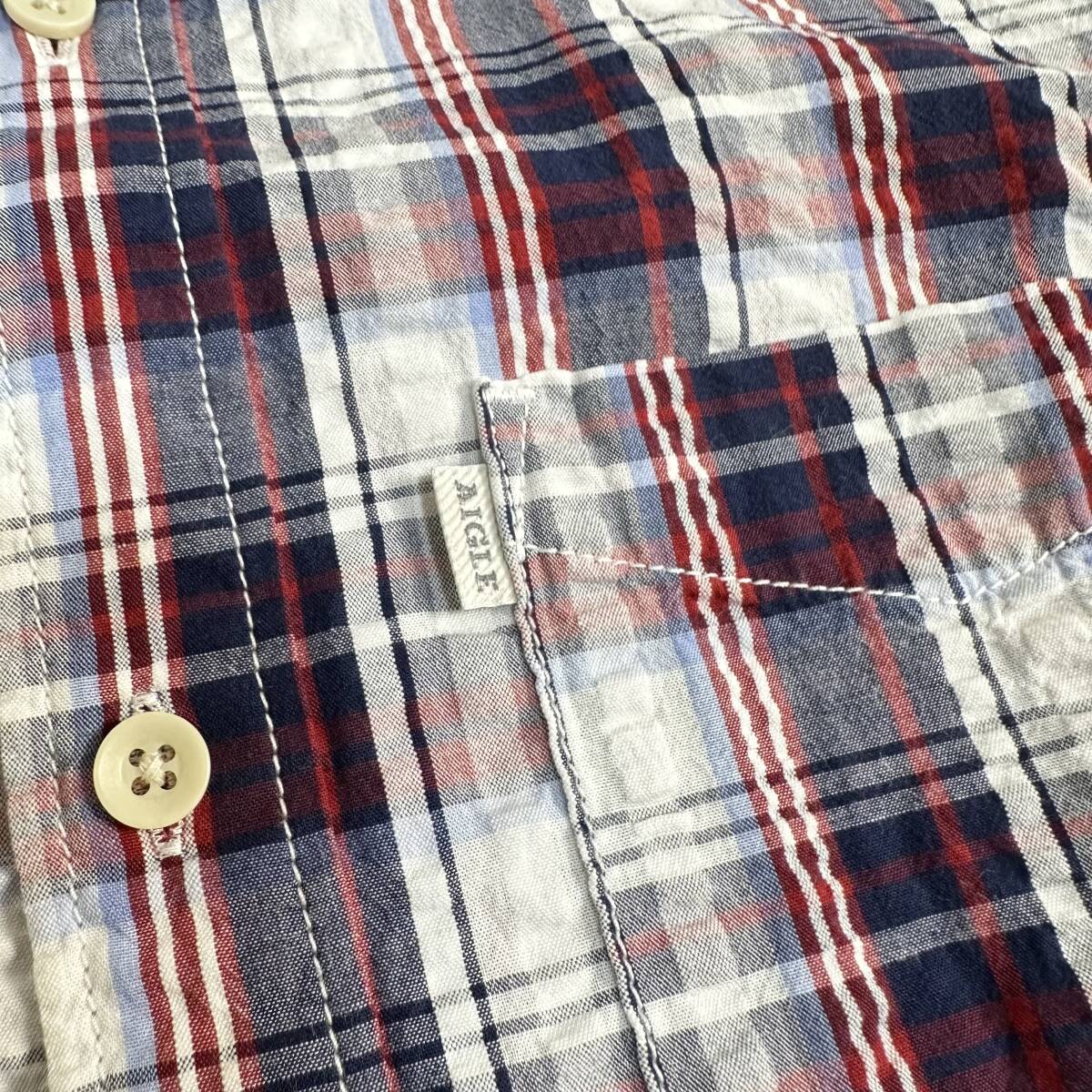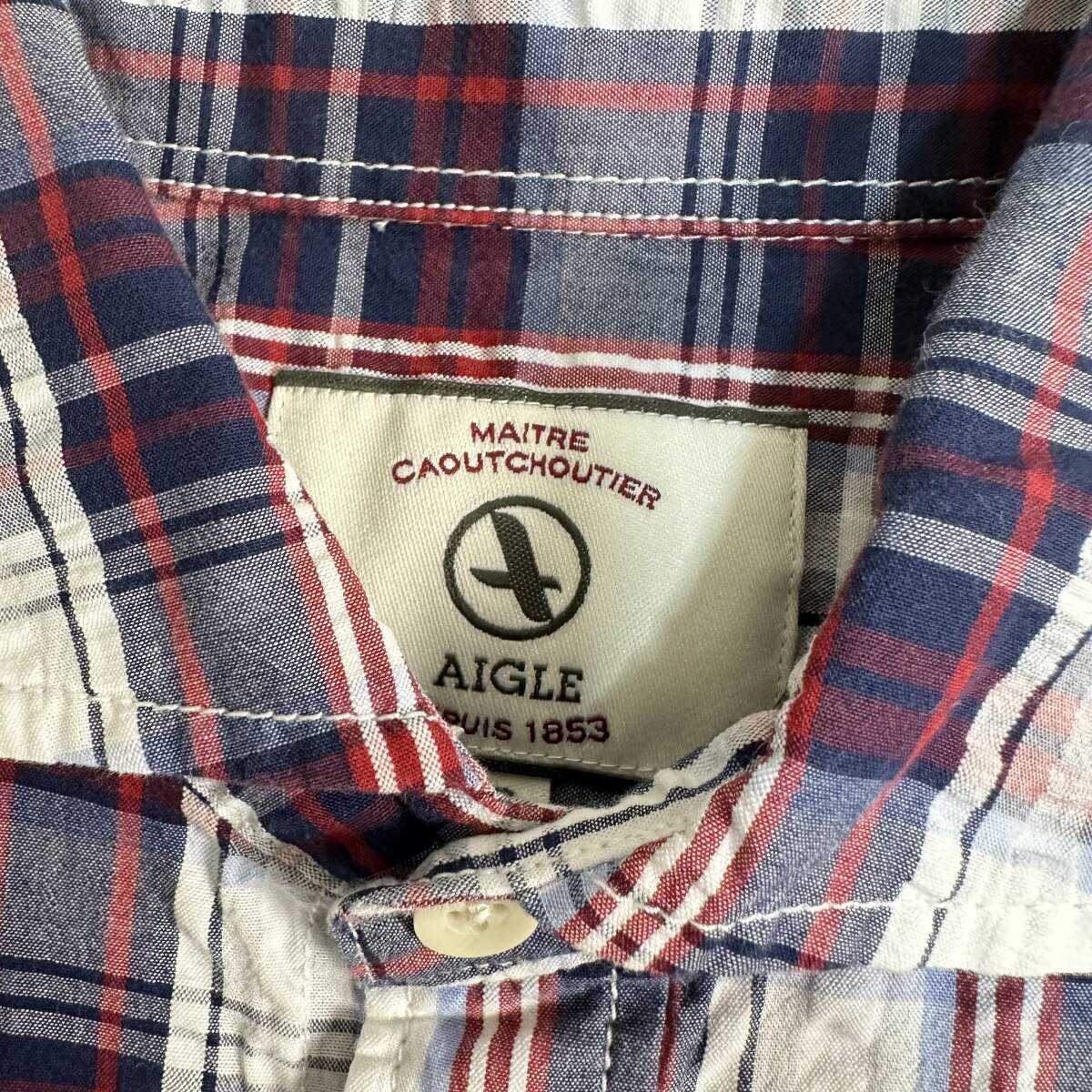 【AIGLE】エーグル マドラスチェック シアサッカー 半袖シャツ アウトドア ヤマトインターナショナル レッド ネイビー