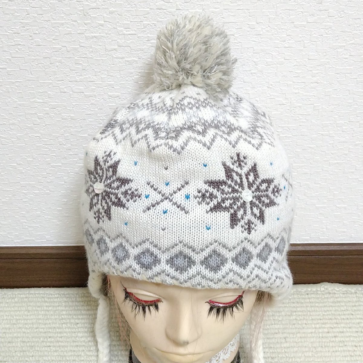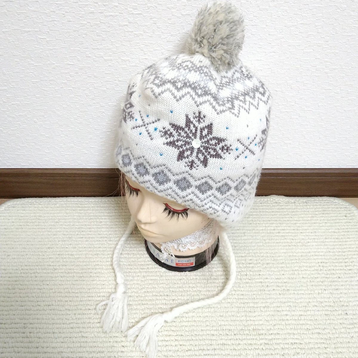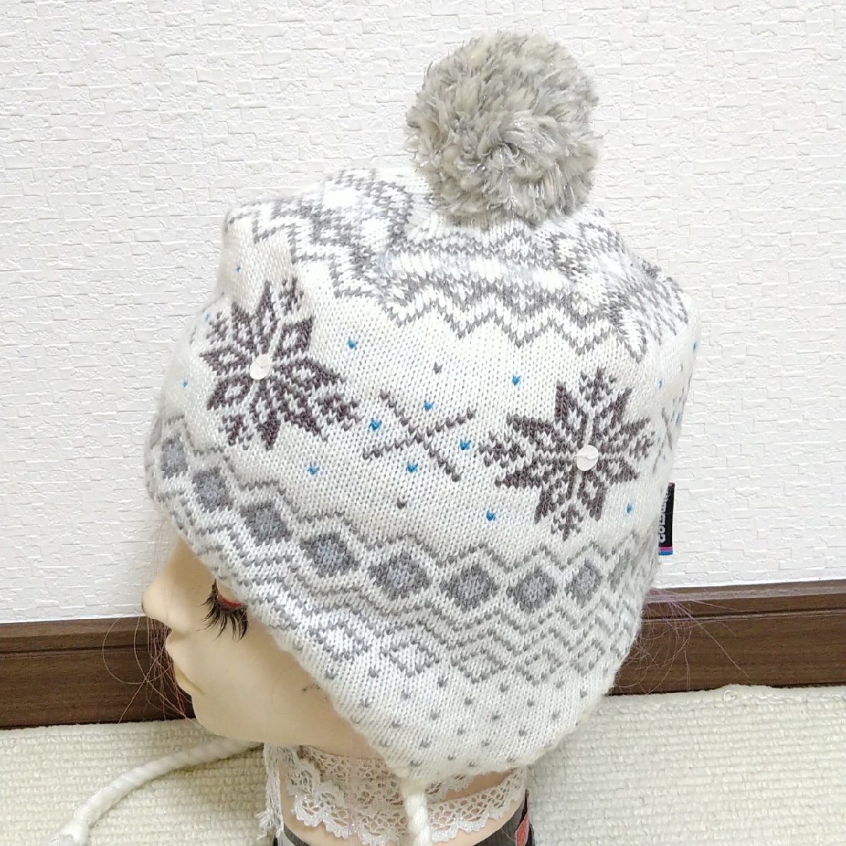 (^w^)b 日本製 GOLDWIN ゴールドウィン ノルディック 柄 ビーニー フライト 耳当て付き ニット キャップ CAP 帽子 白 グレー C1029wE