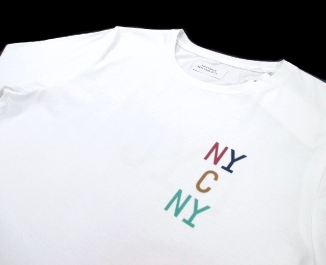 【3000円SALE】新品★SATURDAYS NYC 前後カラーロゴ 英文字Tシャツ Sサイズ★定価6600円 白 サタデーズニューヨークシティー メンズ