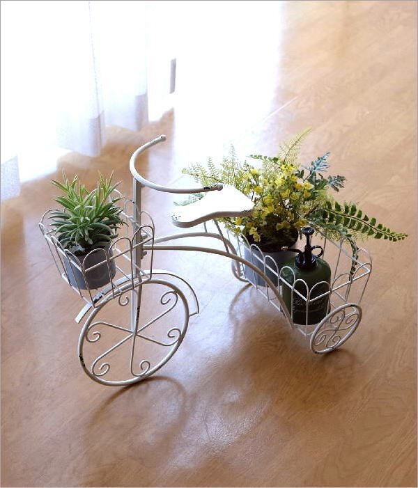 | お庭や玄関のアクセントになる アイアンの三輪車プランター バスケットが付いていて 鉢をそのまま入れると たちまち、オシャレな雰囲気に。 バスケットに鉢花をそのままセットしたり ココヤシマットや水苔、マルチシートで被って 直接植え込みもできそうです 前と後ろにカゴが付いて バランスよく鉢を飾れそう 商品名 : レトロなガーデントライシクル ホワイト 商品番号 : mty8107 全体のサイズ(cm) : 幅56×奥行27.5×高さ12.5 バスケットサイズ : 前)幅14×奥行14×高さ12 後)幅15×奥行27.5×深さ12.5 材質 : アイアン 重量 : 1kg 生産国 : 中国 ※お客様にて簡単な組み立てとなります ※車輪、ペダルは廻りません ※塗装や凹みによりレトロな風合いに仕上げられた商品でサイズや塗装の仕上げ具合等に個体差があります ※手作り品の為多少のアバウトさが見られる商品です。予めご了承ください ※直射日光や風雨によるダメージは避けられません。より長く楽しむために定期的なメンテナンスをお勧めします ※ディスプレイによる色の違いはご了承下さい |