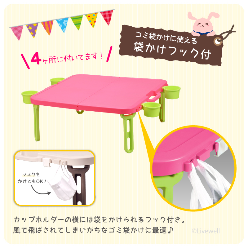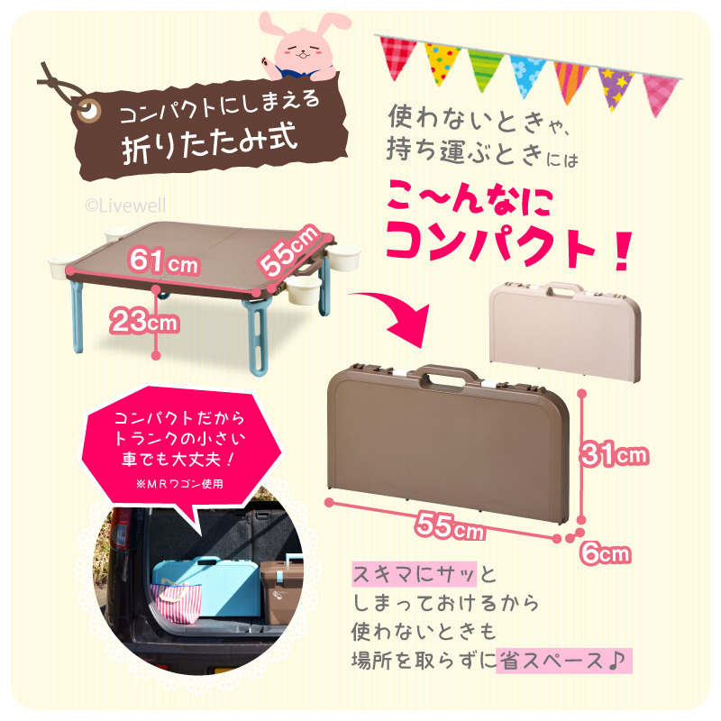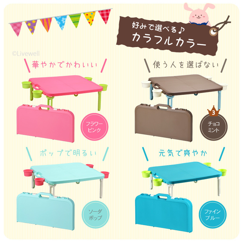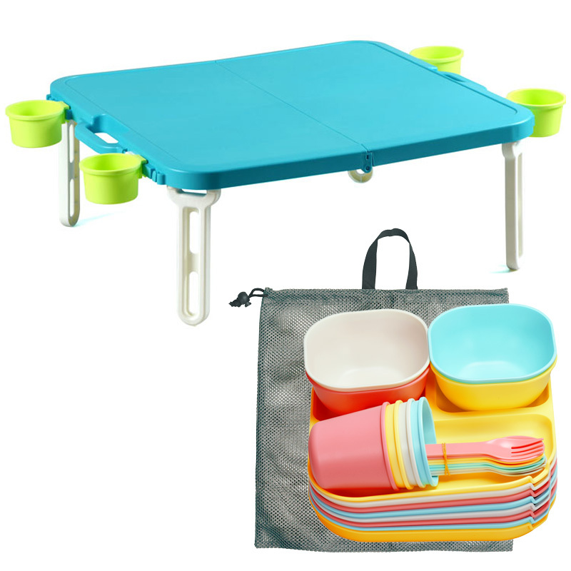 折りたたみテーブル+食器セット ピクニックテーブル アウトドア おしゃれ かわいい バタフライレジャーテーブル角型(ファインブルー)