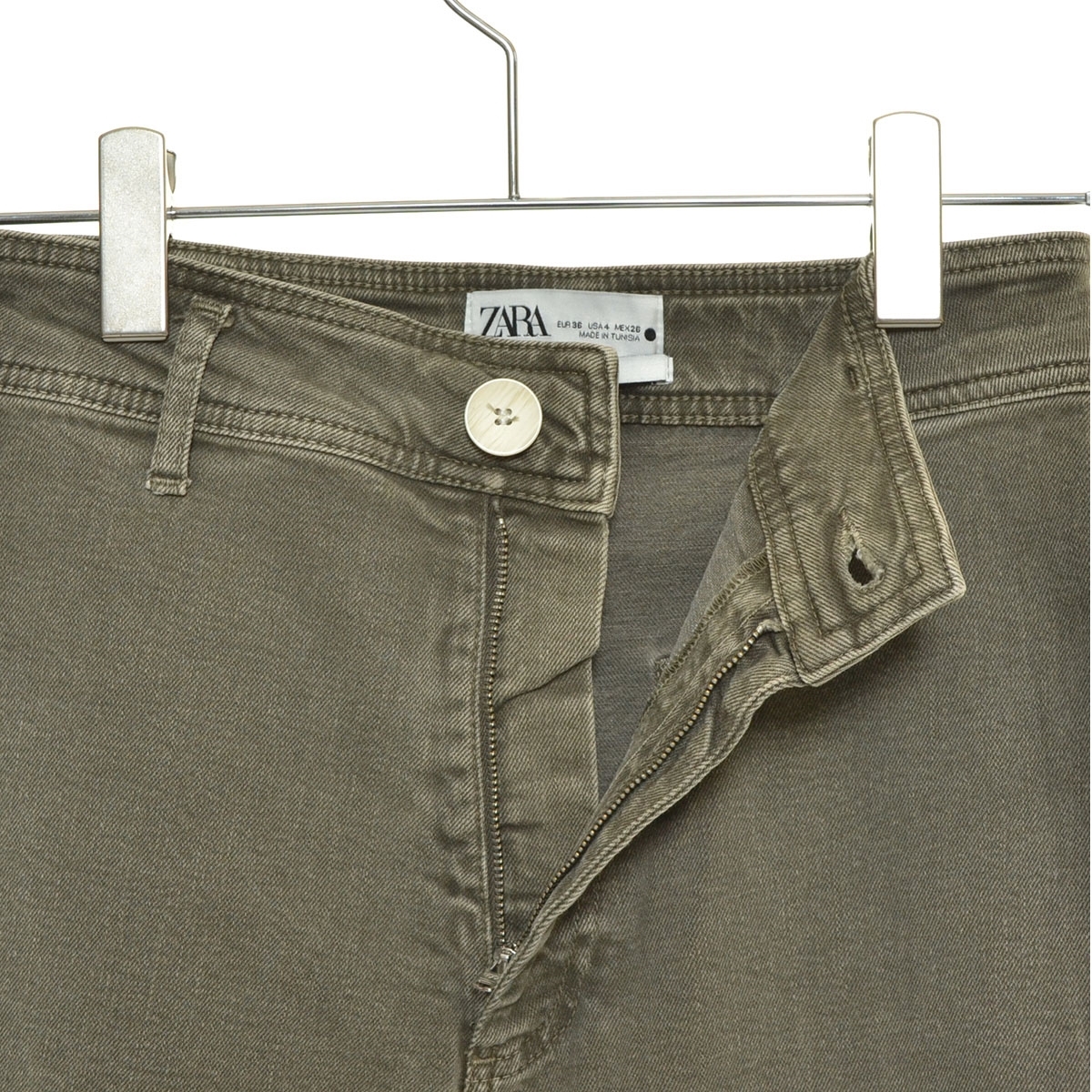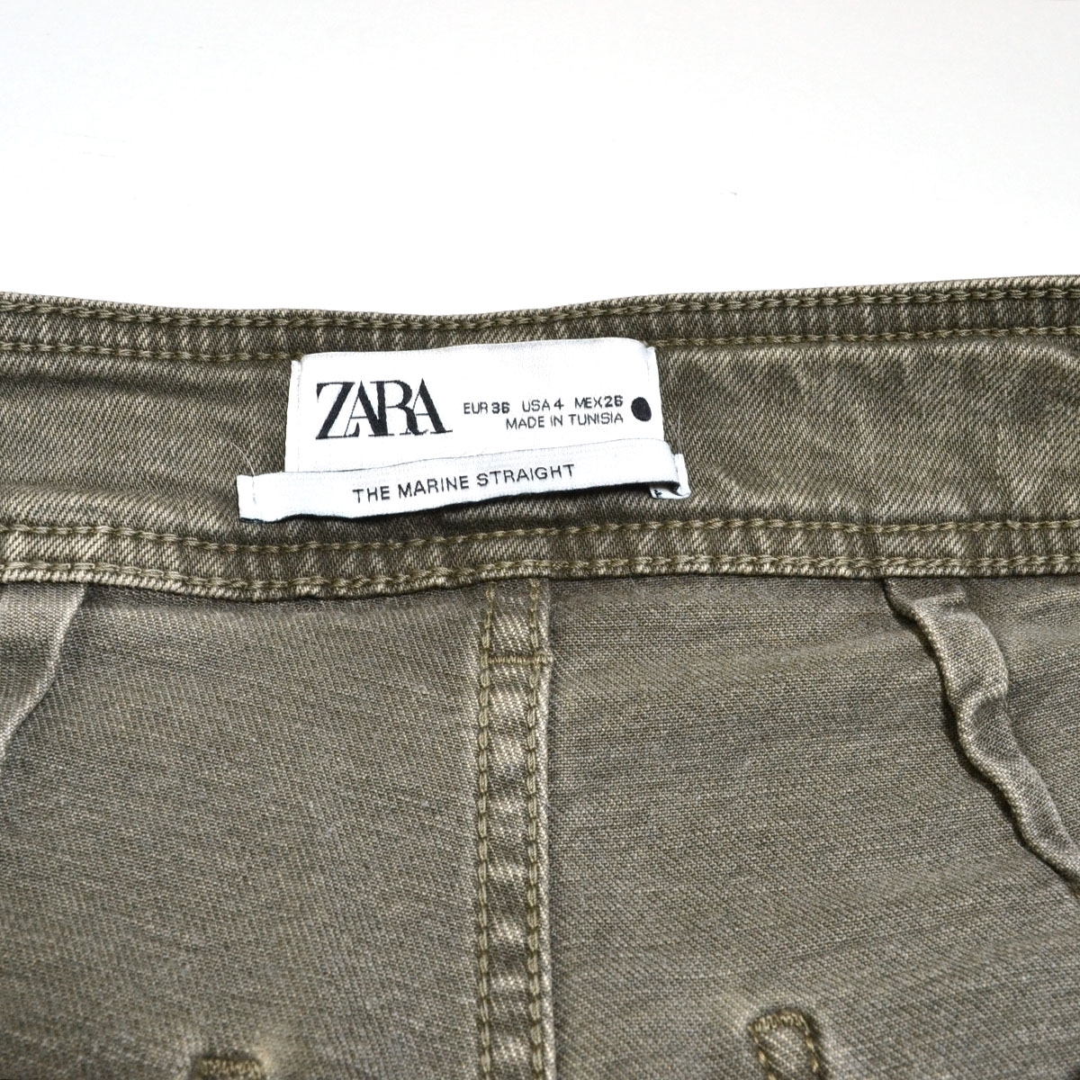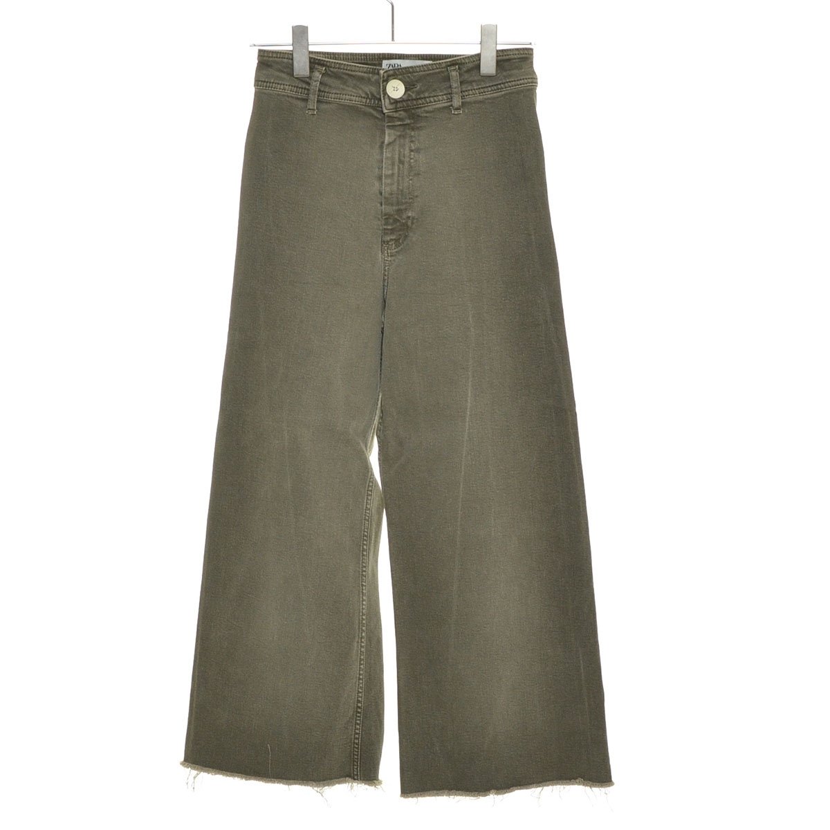 ■519724 ZARA ザラ ●デニムパンツ カットオフハイウエストワイドジーンズ サイズ26 レディース グレーグリーン