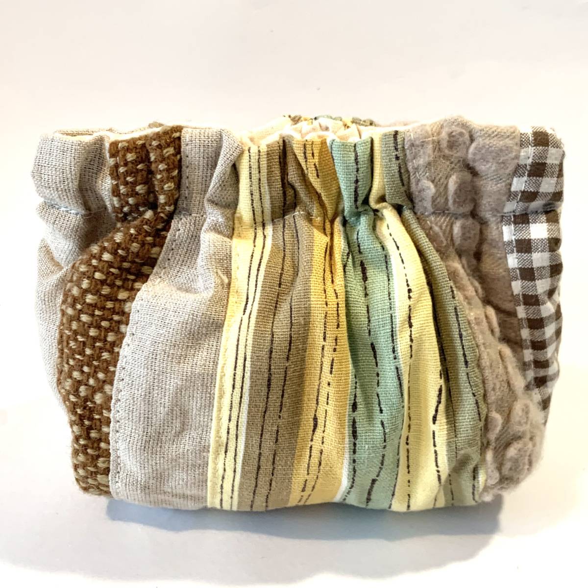 ハンドメイド 未使用品ヴィンテージファブリック使用 マルチカラーストライプばねポーチ アンティーク デッドストック フィードサック