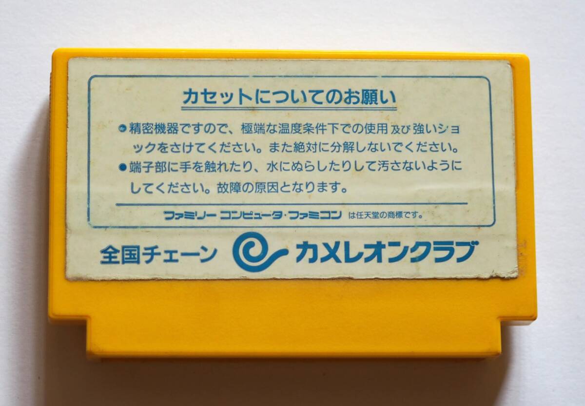 カセットの裏のシールにゲームショップのシールが貼られています。
