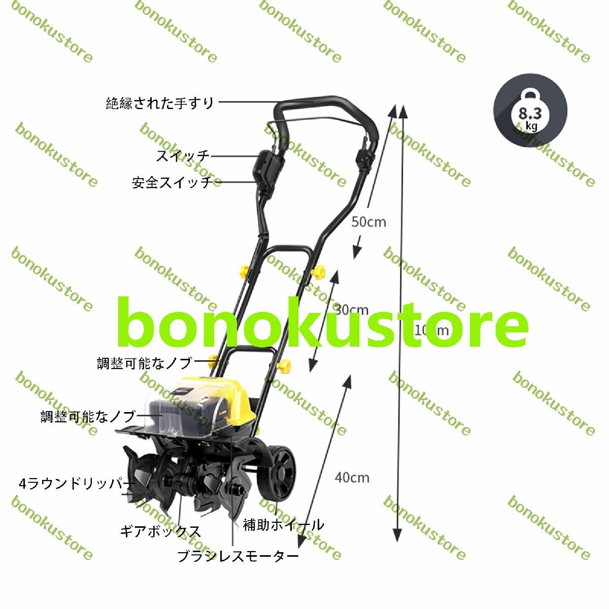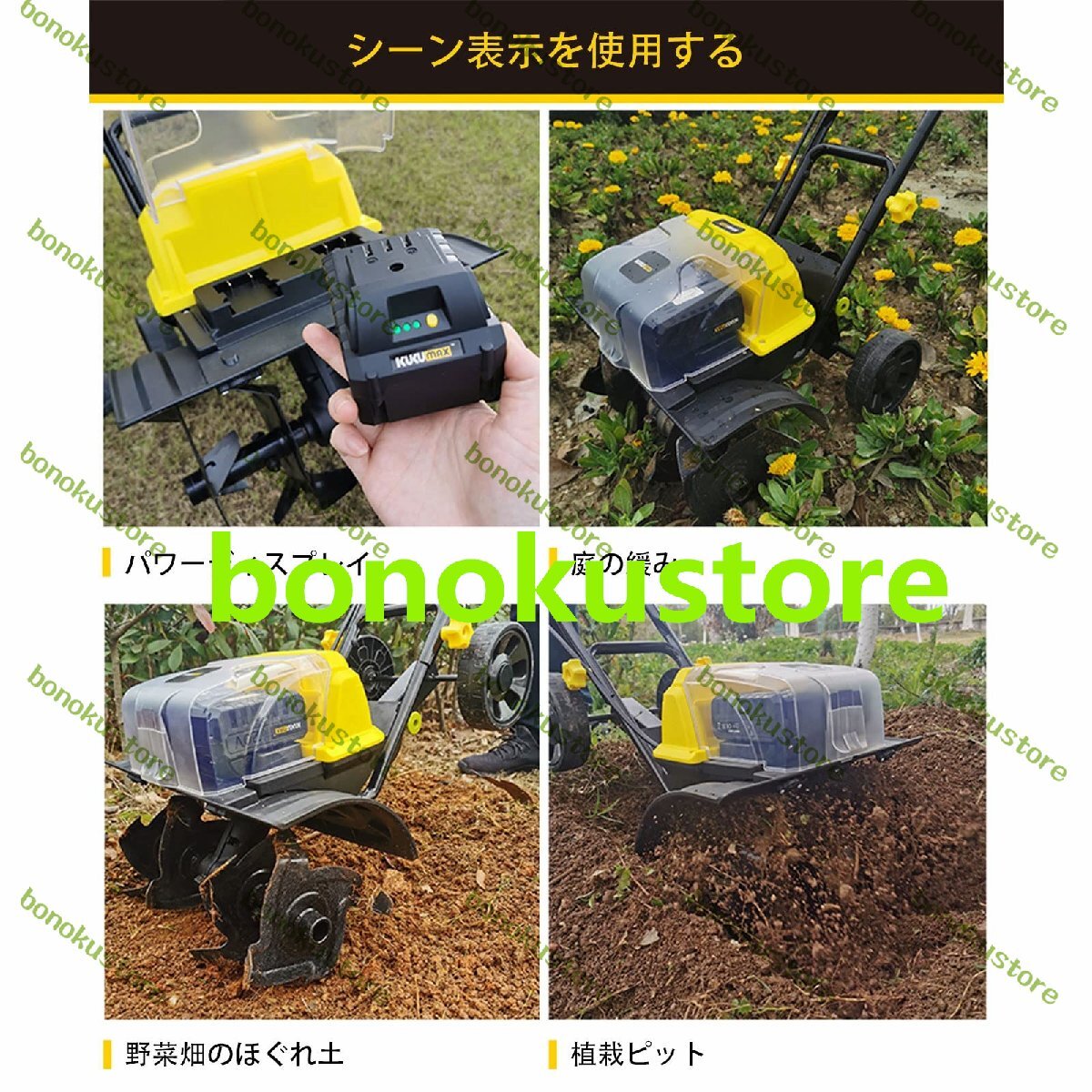 効率的で強力:4枚の高硬度マンガン鋼ブレードを備えたコードレス電気耕うん機、耕作可能な土地の深さ18cm、耕作可能な土地の幅36cm、溝掘りと深い耕作のニーズを満たします。 40V 4.0Ah充電式リチウムイオンバッテリーは約30?90分持続します。