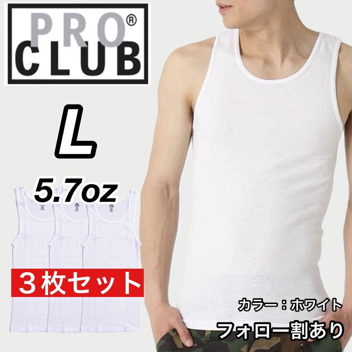 プロクラブ PROCLUB 新品未使用 5.7oz 無地 リブタンクトップ インナー 白3枚セット Lサイズ