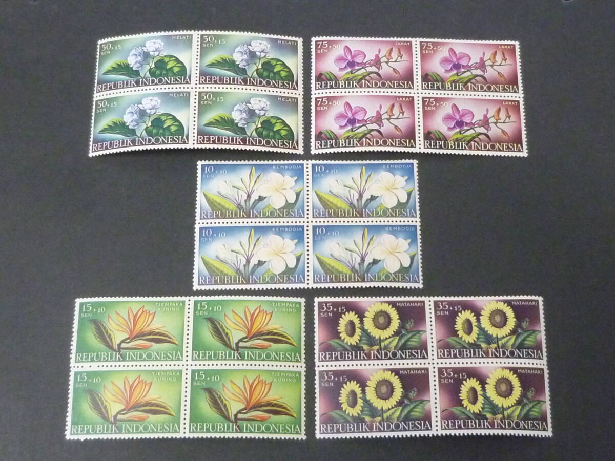 24L P №23 インドネシア切手 1957年 SC#B104-08 花 田型 5種完 未使用NH・VF 【SC評価 $16,8】
