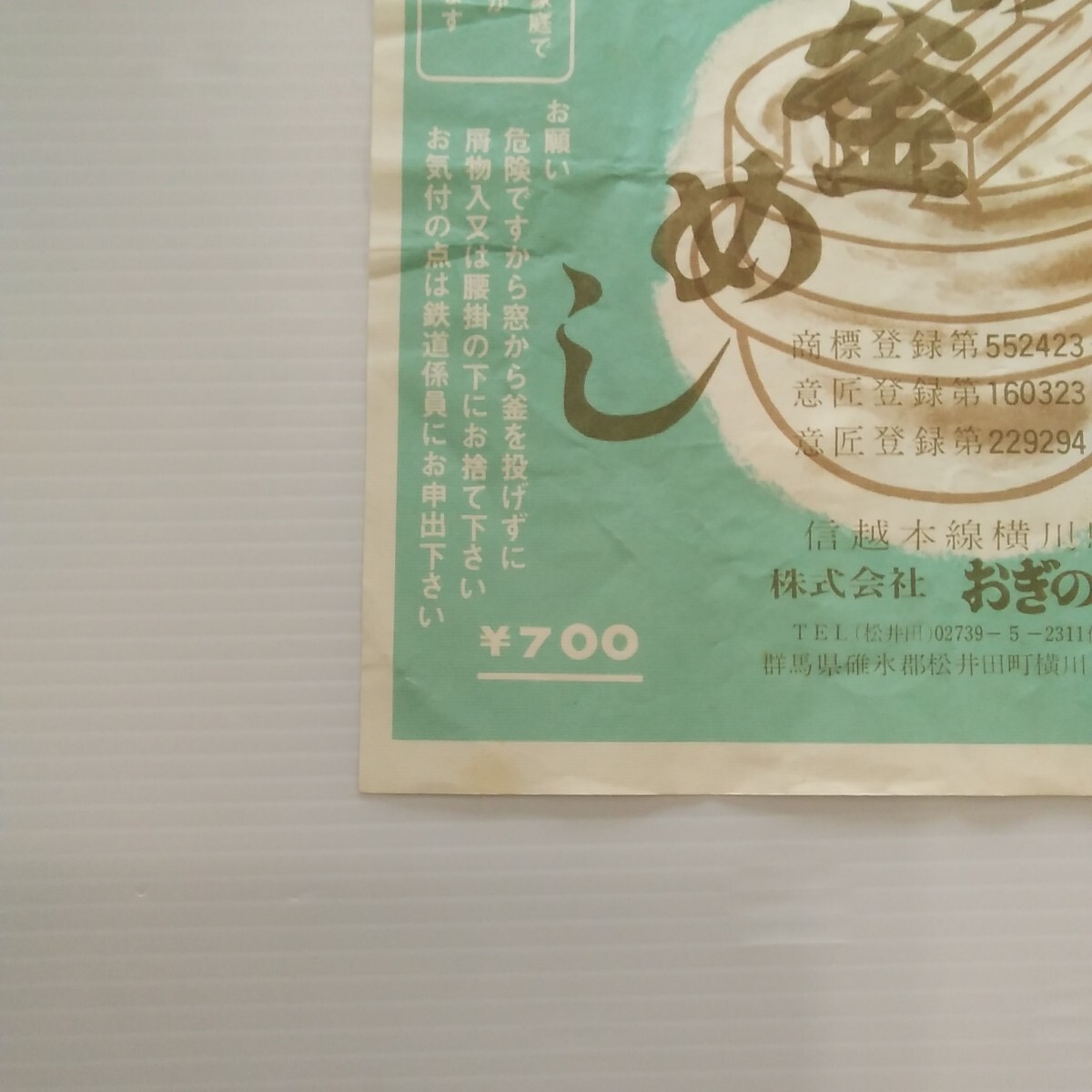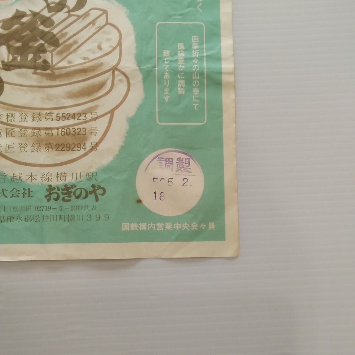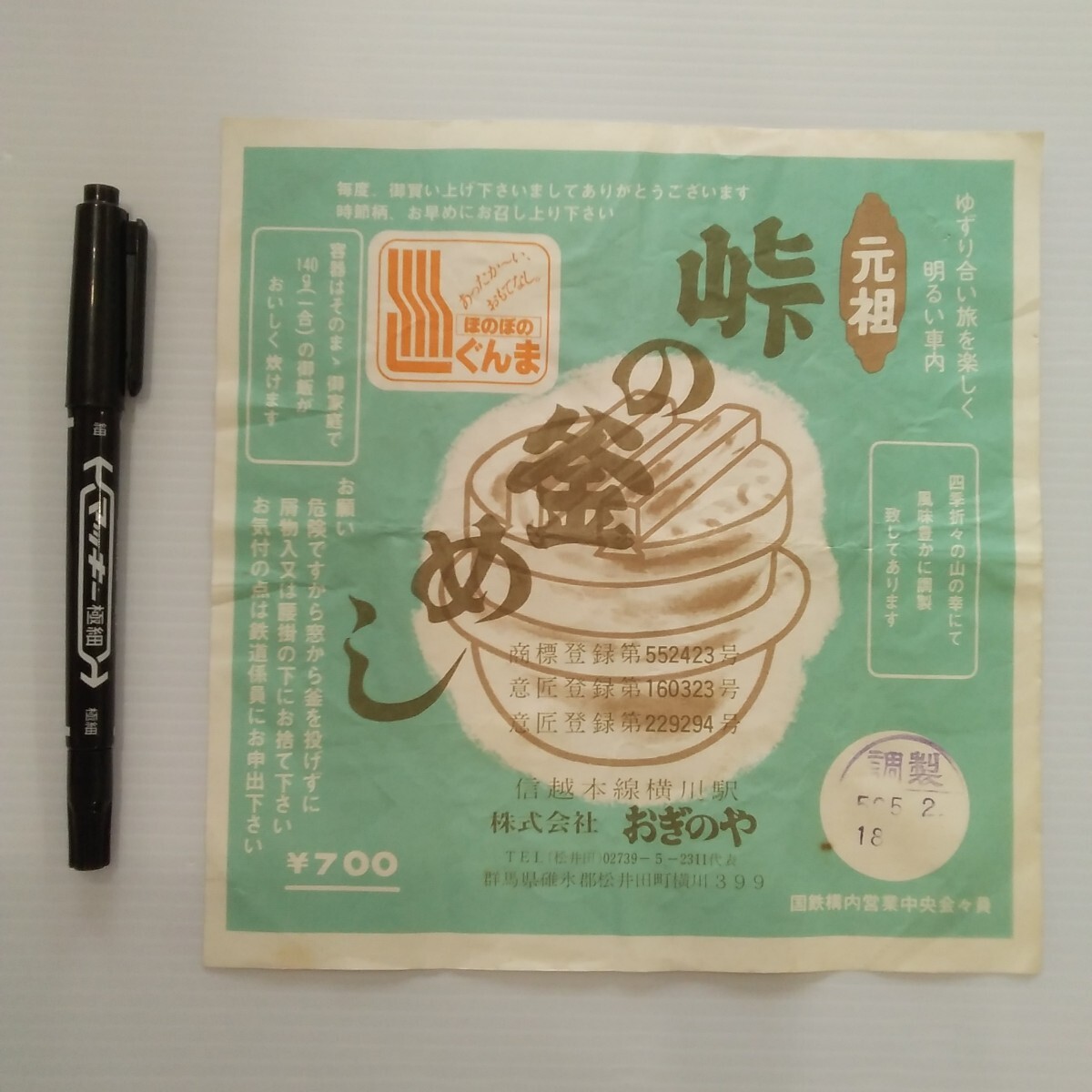 横川駅 駅弁 掛け紙 元祖 峠の釜めし おぎのや 昭和 当時700円 6