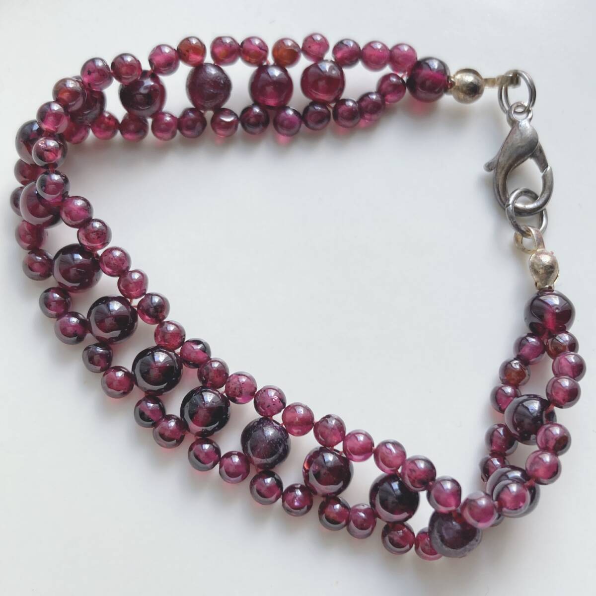 ヴィンテージブレスレット ガーネット 編みブレスレット ぶどう ボルドー☆japan Vintage jewelry accessoriesk0779