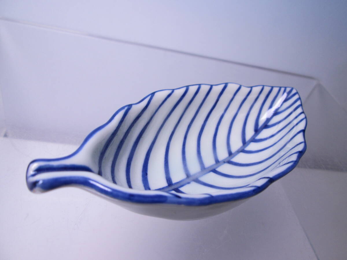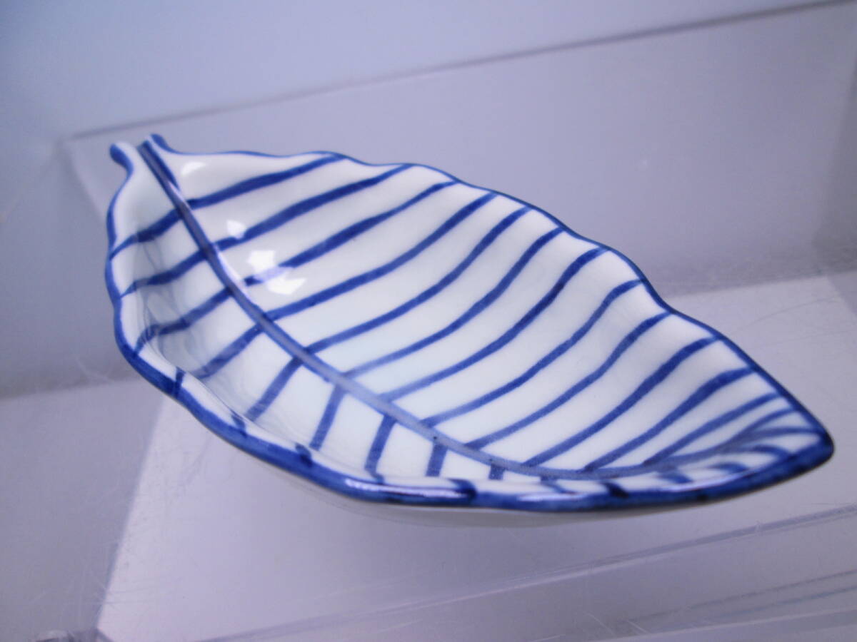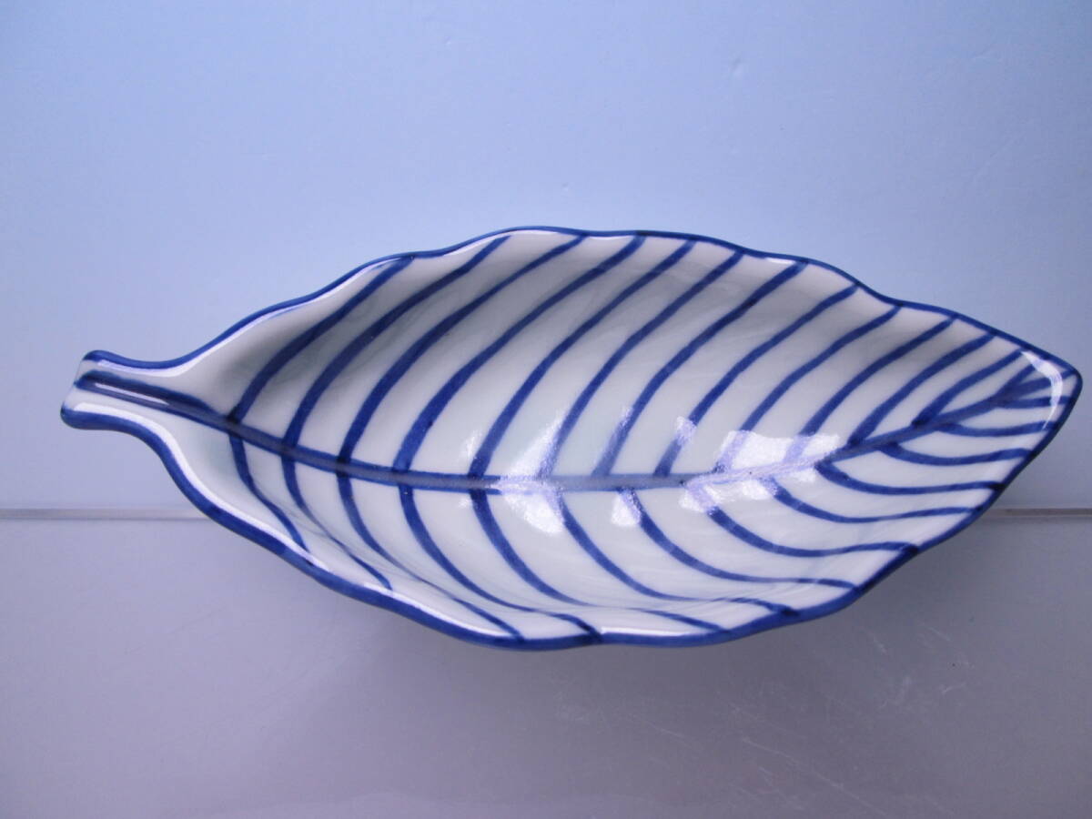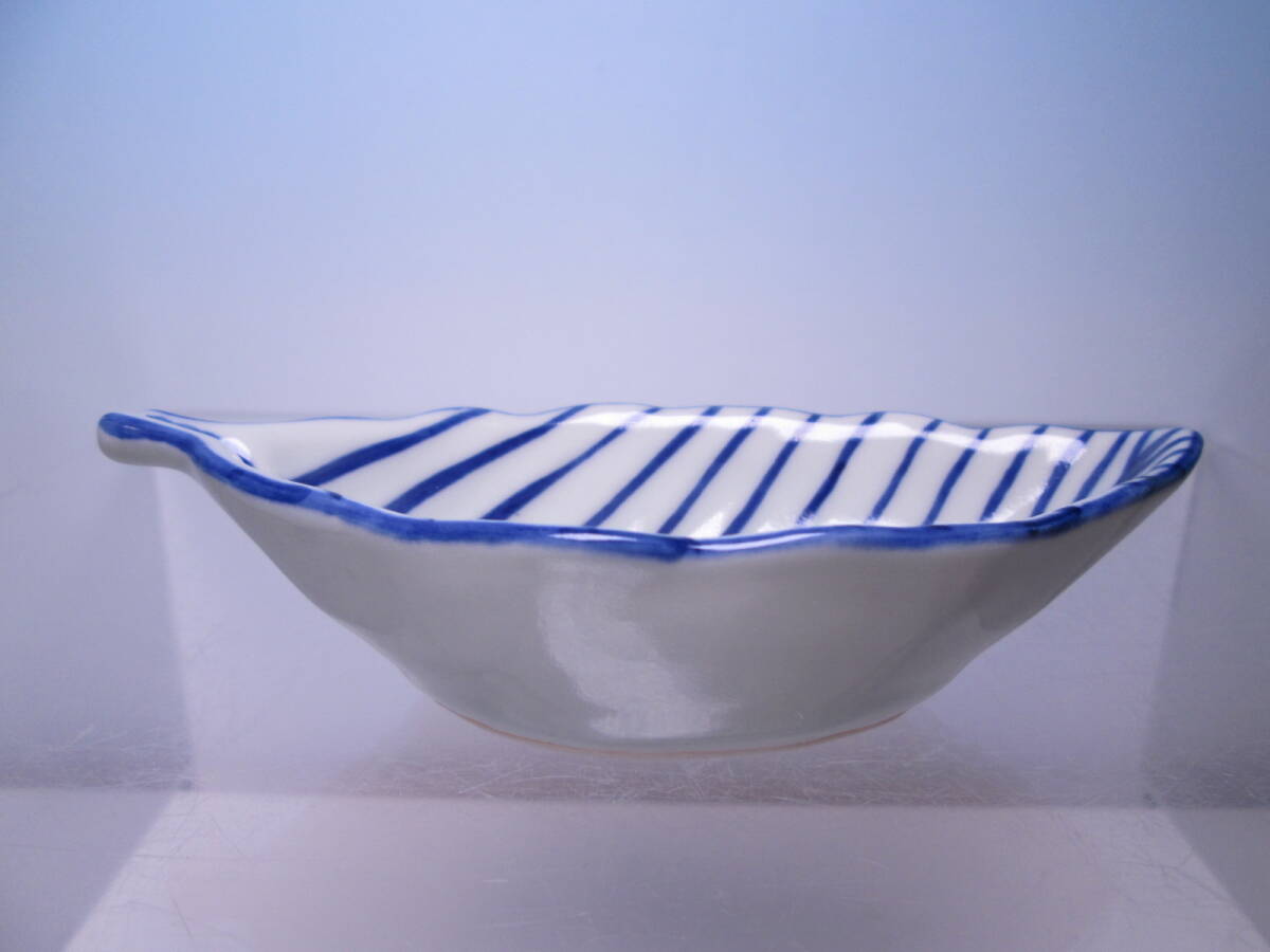 爽やかなブルーライン葉形の向付です。
