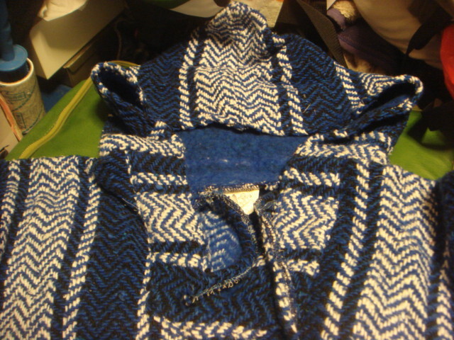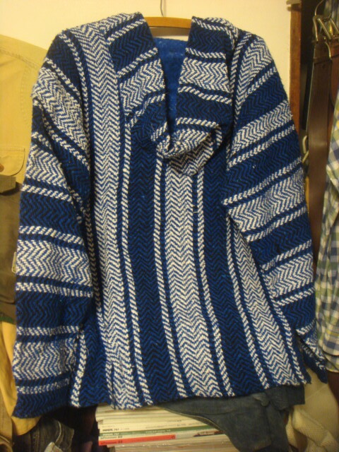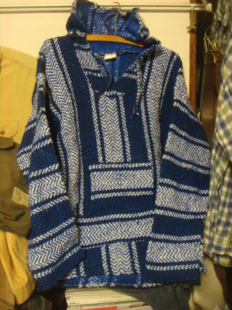 1912MEXICOメキシコ製ストライプ メキシカンパーカP/Oプルオーバー フードLジャケットUSED古着パーカー