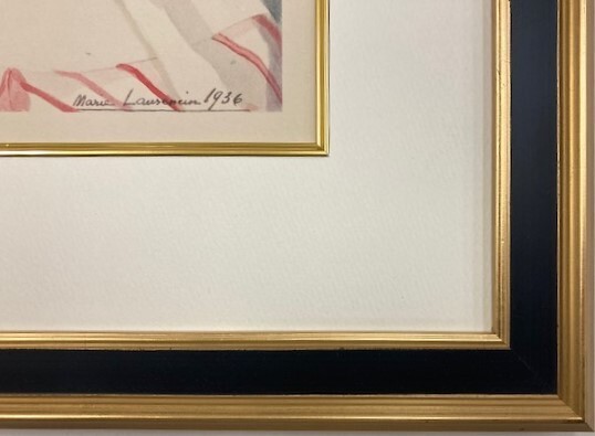 製作年=【  1937年  】/タイトル=【  CAMILLE-PLATE.3   】/ED=【 174/1500 】/サイン=【 奥付・ローランサン直筆鉛筆サイン 】/版元=【   CURWEN PRESS   】/イメージサイズ=【  205X165  】/新品オーダー高級金箔額装(艶消しブラック)サイズ=【  365X325/面金マット仕様  】/状態=大変良好【  ミントコンディション  】/ 送料=無料【  ヤフネコ宅急便  】