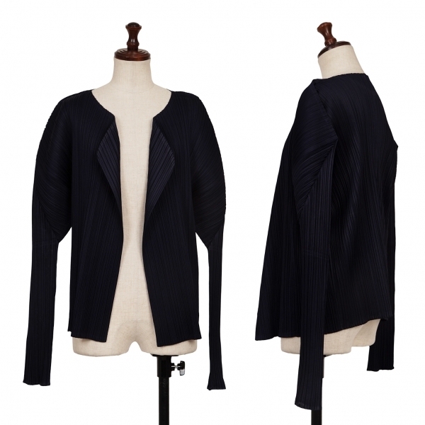 | プリーツプリーズPLEATS PLEASE プリーツボタンレスカーディガン 紺4 |