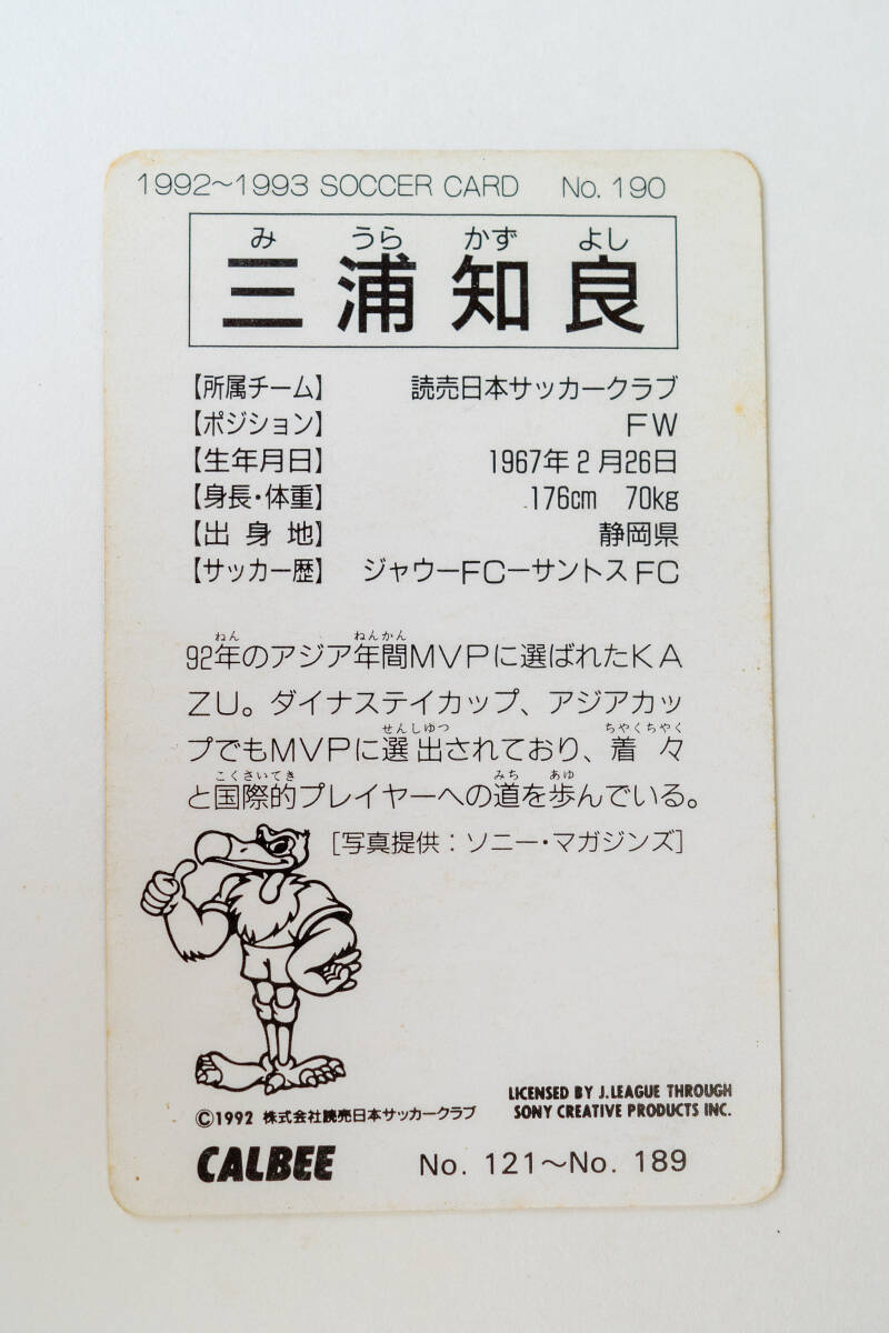 カルビー Jリーグチップス 1992-1993 サッカーカード No.190 三浦知良