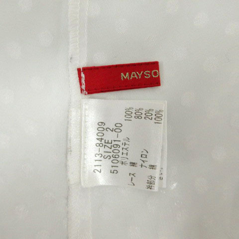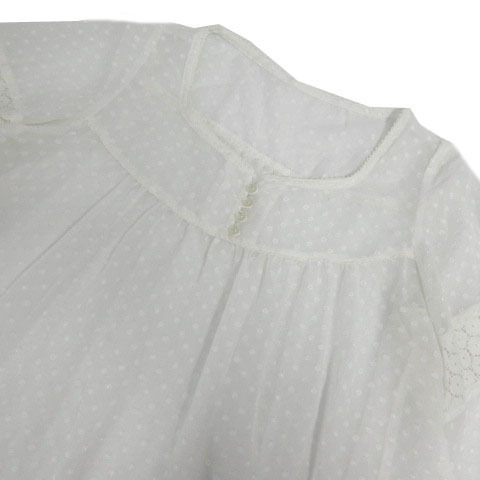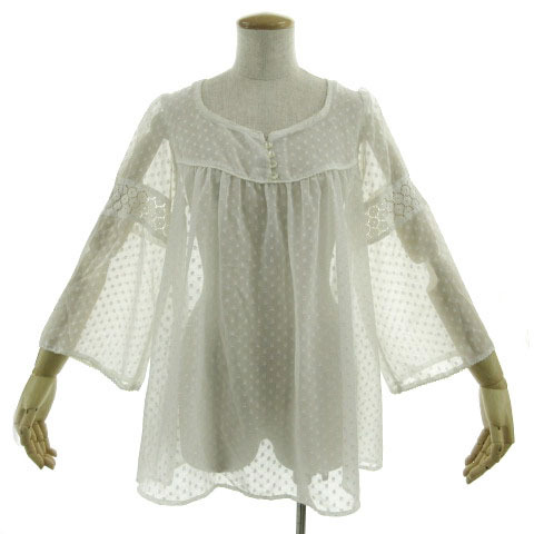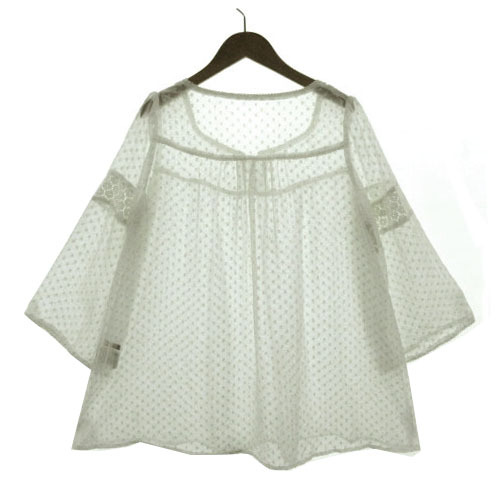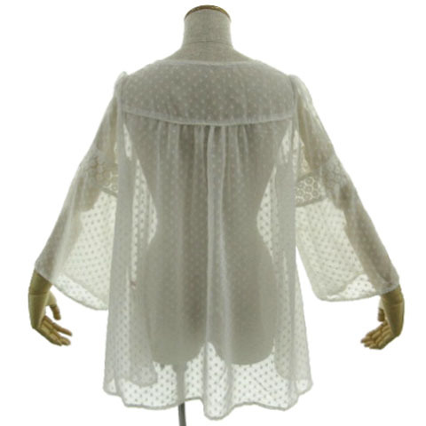 メイソングレイ MAYSON GREY ブラウス シアーシャツ ヘンリーネック フレアスリーブ レース切替え シースルー 刺繍ドット オフ白 2