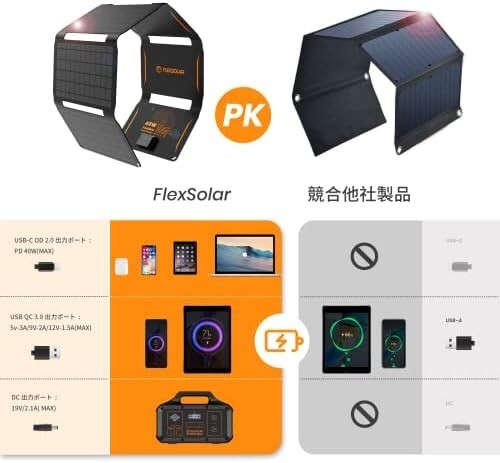FlexSolar ソーラーパネル 40W ソーラーチャージャー usb3出力ポートソーラー充電器防水防塵 DC/PD40W/QC