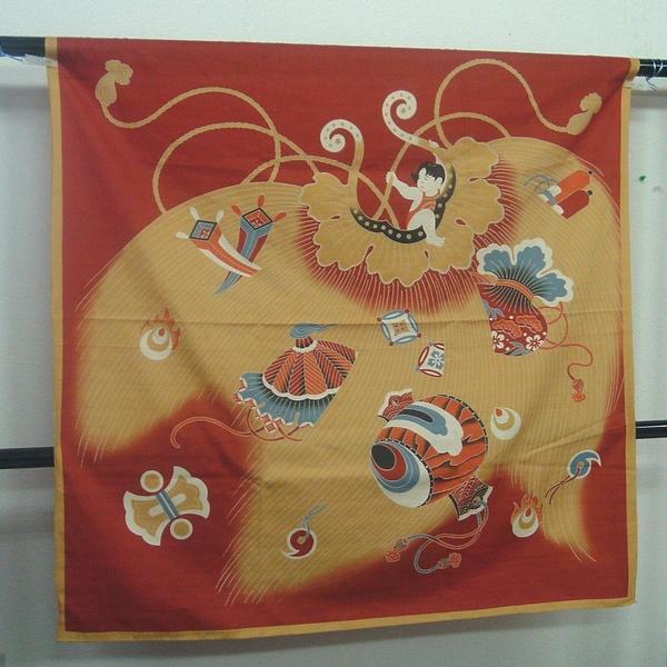 【説明】 財をなす・家運隆盛(かうんりゅうせい)風呂敷 宝を隠すものの隠しても隠しきれず溢れる財宝を意味しています。 「子宝」は並外れた怪力で病にも勝つ力を持つ 「打出の小槌」「如意宝珠」何ごとも欲しいままに手に入る 「花輪違い」「金のう」財布 「隠れ蓑」「隠れ笠」身を守る 「丁子」香料や薬の原料(稀少価値の物) 「巻物」知恵を授けてくれる 「分銅」秤(はかり)の基準(大事にされてきたもの) 寸法:約117cm×約122cm 素材:綿100%(綿シャンタン) ☆他にもたくさん出品しております!是非ご覧下さい! |
