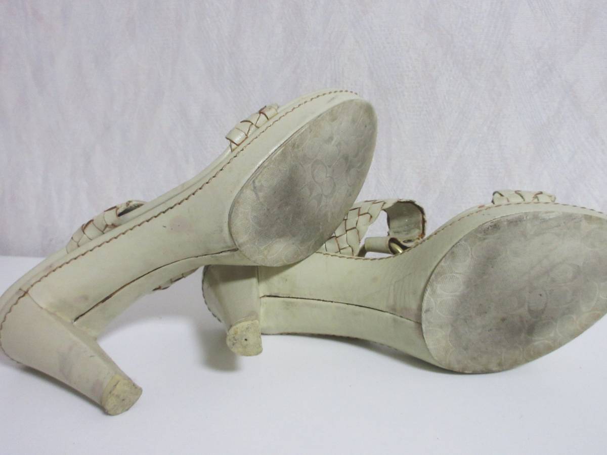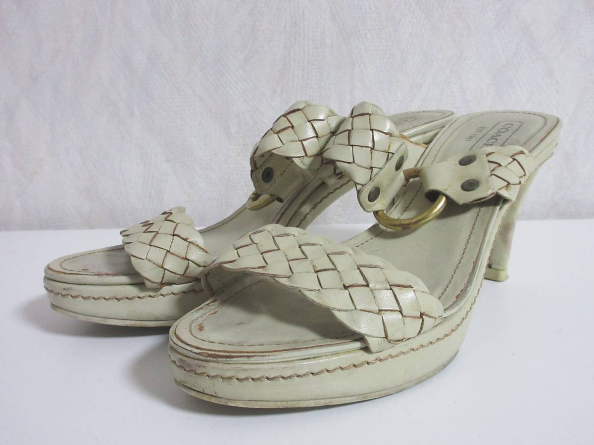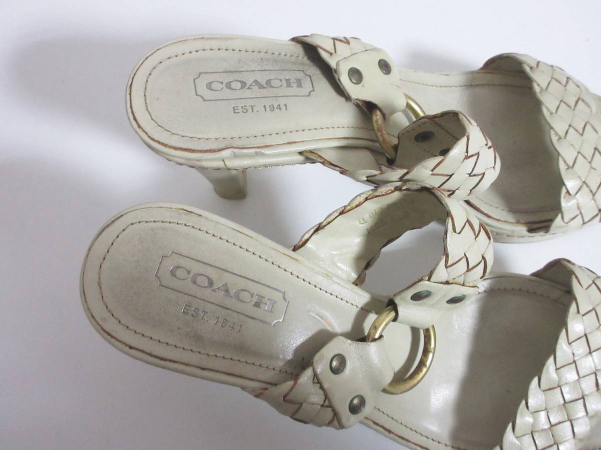コーチ COACH レザー 編み込み サンダル ベージュ 6 1/2B 北6626