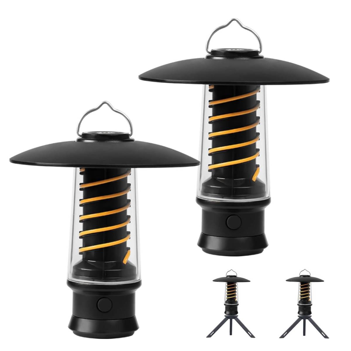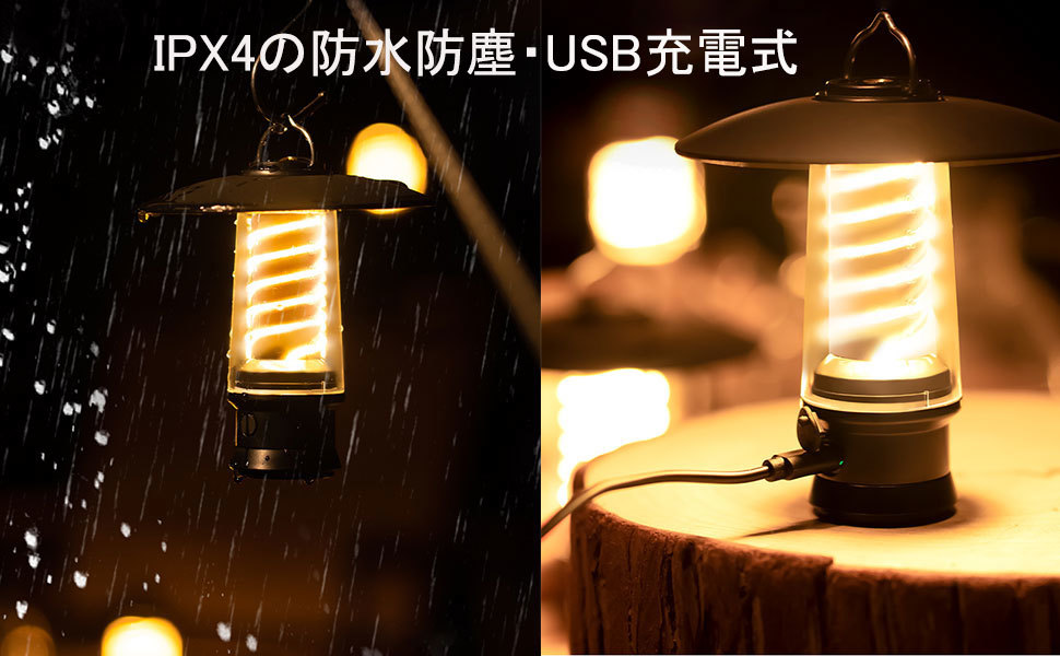 LEDランタン 2個セット キャンプランタン 懐中電灯 防水 ポータブル USB充電 3点灯モード 吊り下げ用 ブラック 安全で手軽な明かりを確保