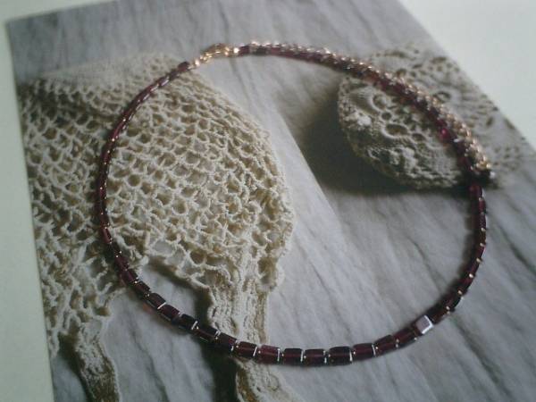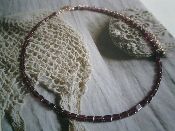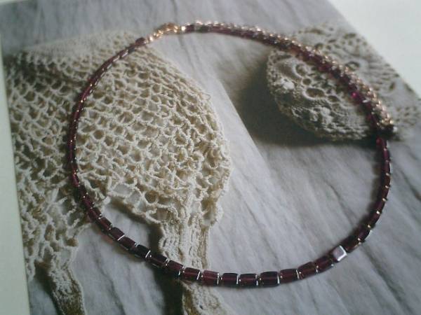 ナチュラル気分・・シリーズです♪退廃の巴里・・深い赤のガーネットのネックレスです♪シックなピンクゴールドのチェーンを合わせてアンニュイな表情です♪6×4ミリ位のスクエアカットのガーネットはシンプルで合わせやすいデザインです♪長さは42センチ+アジャスター14センチで最長56センチ位です♪お揃いのネックレスやブレスレットも出品しています♪シンプルで飽きのこないいつまでも着けられるデザインを考えて作りました!ハンドメイドをご理解頂いてノークレーム、ノーリターンでお願いします