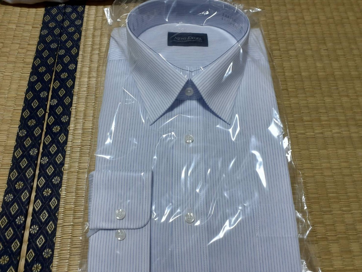 《新品》NEWS EXCEL 長袖ワイシャツ 白 ピンストライプ