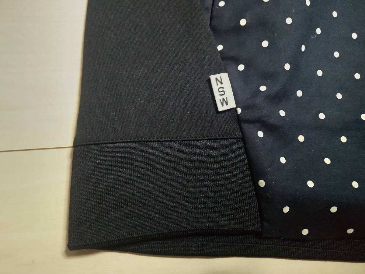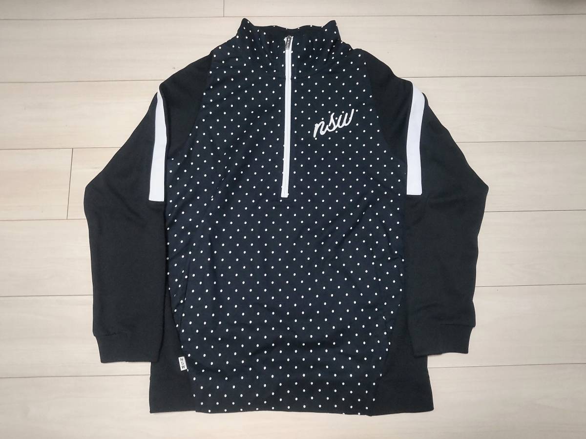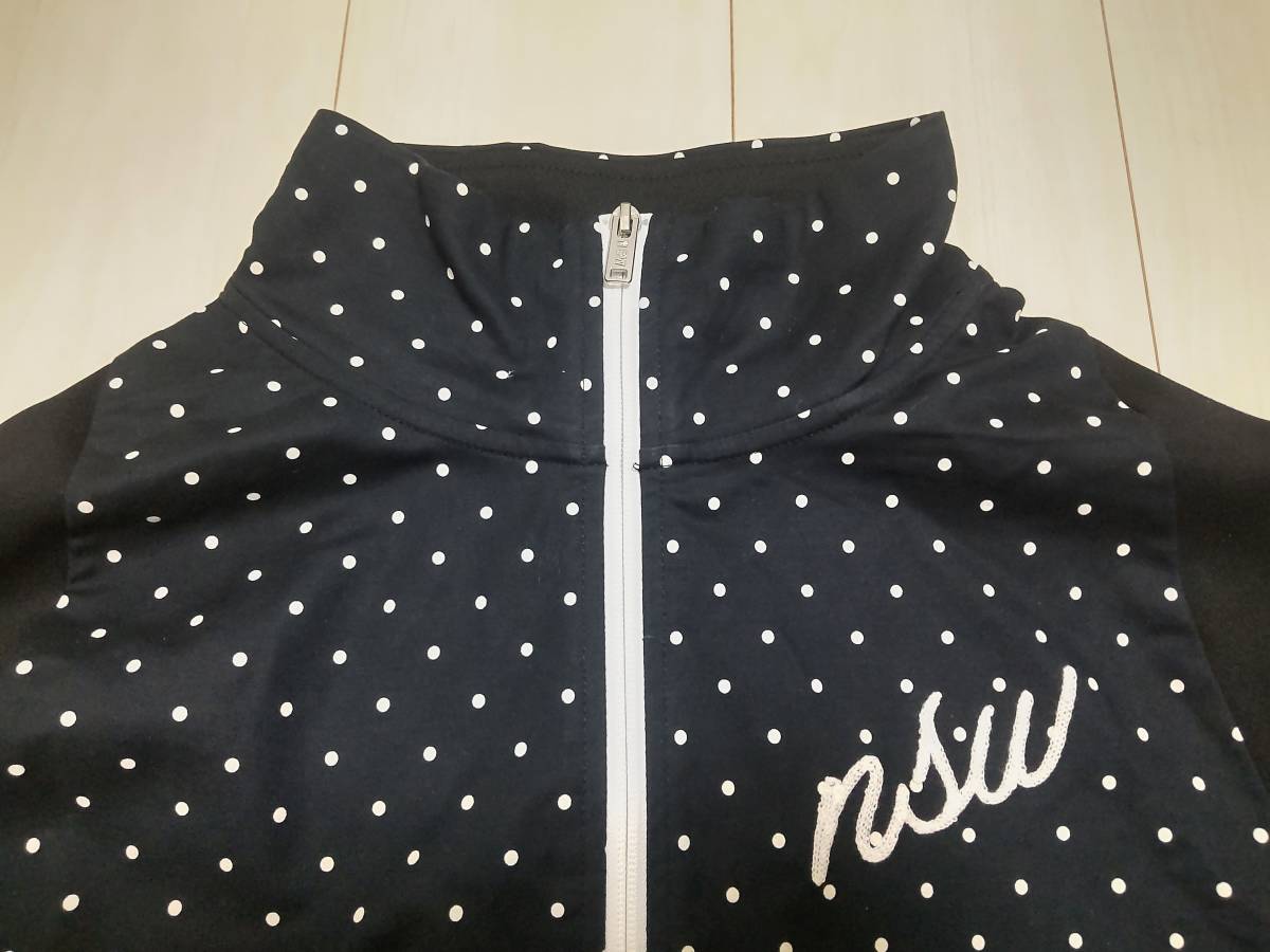 NIKE(ナイキ)のジャケットです ■モデル名はNSW Polka Dot Half Zip Jacket Pulloverです ナイキのNSWカテゴリーになります ■未使用品なのですが保管による使用感が少々あります ご使用には問題ございません タグは付いております(シワがあります)■サイズはSになります 素人採寸ですが 身幅(脇の下で)55cm 着丈(背面側で)71cm 裄丈82cm ありました ■ハーフジップのプルオーバー型となっております ジャケットとシャツを合わせたようなスタイルです ■正面はドット柄となっております ■本体の生地はポリエステルです ジャージのような雰囲気があります ■ドット柄の箇所はコットン98% スパンデックス(伸縮素材)2%です ストレッチします ■背面にはナイキのブロックロゴが入っております ■ポケットはジッパー付きのものが正面左右に付いております ■左胸と右下には「NSW」のマークが付いております ■是非よろしくお願い致します