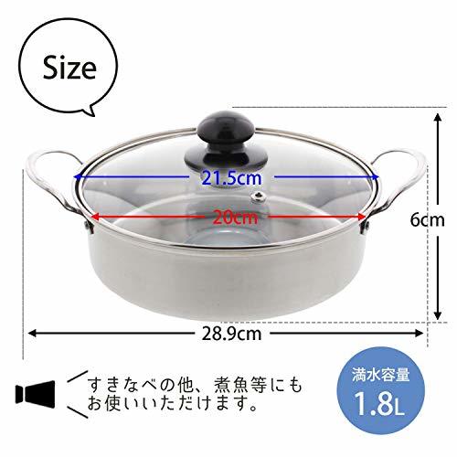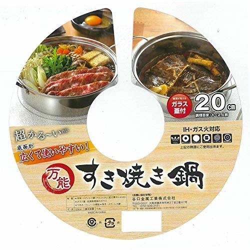 「谷口金属工業 万能すき焼鍋 1~2人用 20cm シルバー 1.8L」▼4904761236660▼(商品説明)・シルバー 1.8L ・・PatternName:すき焼鍋 1.8L・本体サイズ:約21.5×28.9×6cm・素材・材質:ステンレス鋼 全面物理強化ガラス フェノール樹脂・原産国:日本・底の厚さ:約0.5mm●軽くて使いやすい! 鍋の季節にオススメの卓上鍋 ●ガラス蓋で調理具合が見やすいシンプルな万能鍋です。 ●ステンレス製なので、IH・ガス火にも対応し、丈夫で長持ちするのが特長です。 ●万能すき焼鍋は、すきなべの他、煮魚等にも便利です。 ●普段使いに最適です。