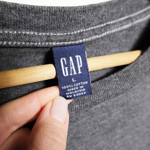 00's ギャップ GAP ロングスリーブ コットン Tシャツ 長袖 (L) 灰杢系 無地 ロンT クルーネック 00年代 旧タグ オールド Y2K 2002年製