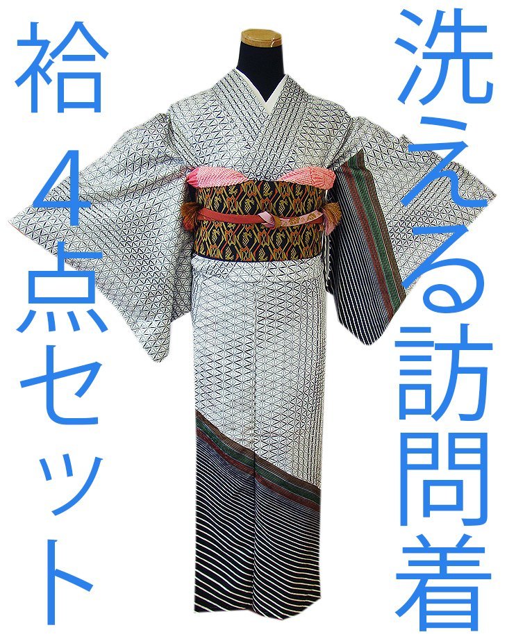 ★超大特価★洗えるポリエステル!お洒落な訪問着&袋なごや帯&帯揚げ&帯〆4点セット I576★ | |