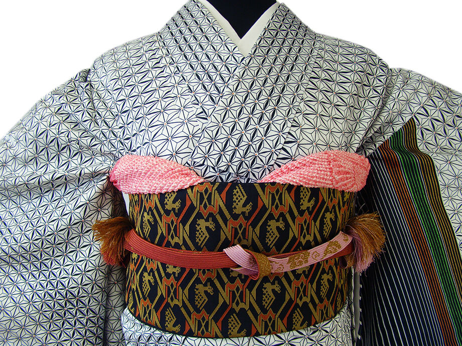 | 素材 | 「ポリエステル」:着物、帯 「正絹」:帯揚げ、帯〆 |