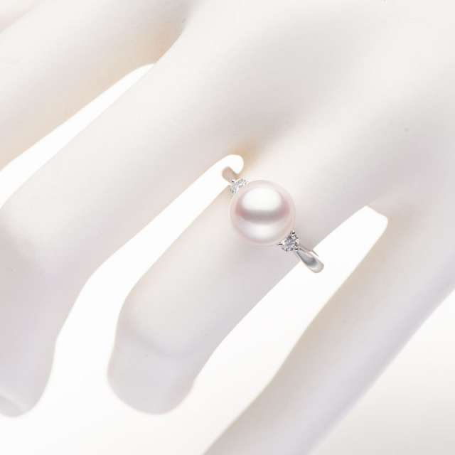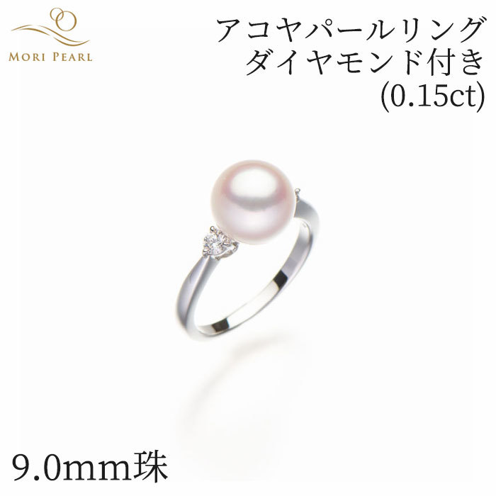 アコヤパールリング 9mm ダイヤモンド計0.15ct アコヤ 真珠 卒業 入学式 結婚式 冠婚葬祭
