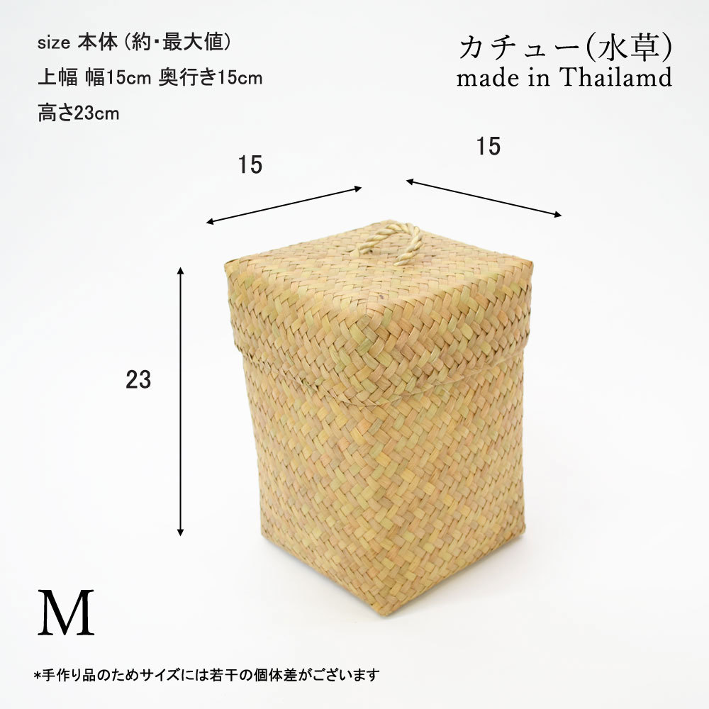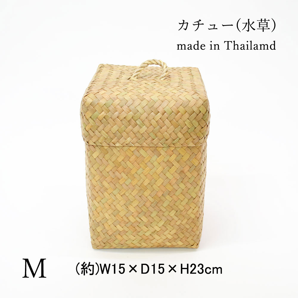 タイ製 カチュー ふた取手付き 四角BOX M トール 水草