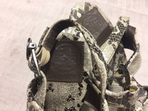 トリーバーチ TORY BURCH インポート レトロ モード パイソン型押しレザー ハイヒール レディース ブラジル製 22cm程度 グレー です。