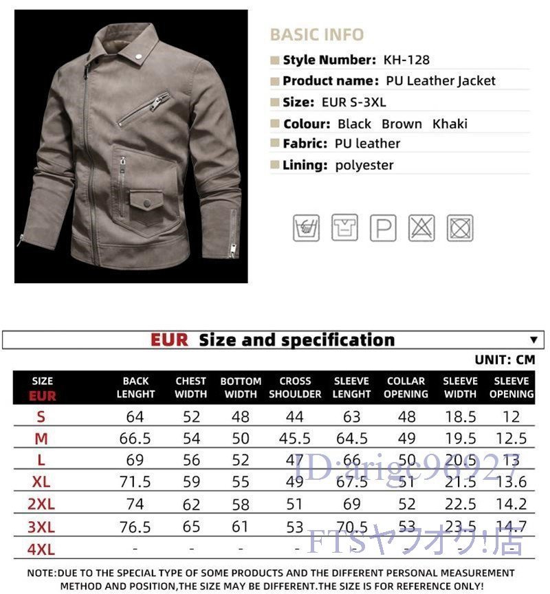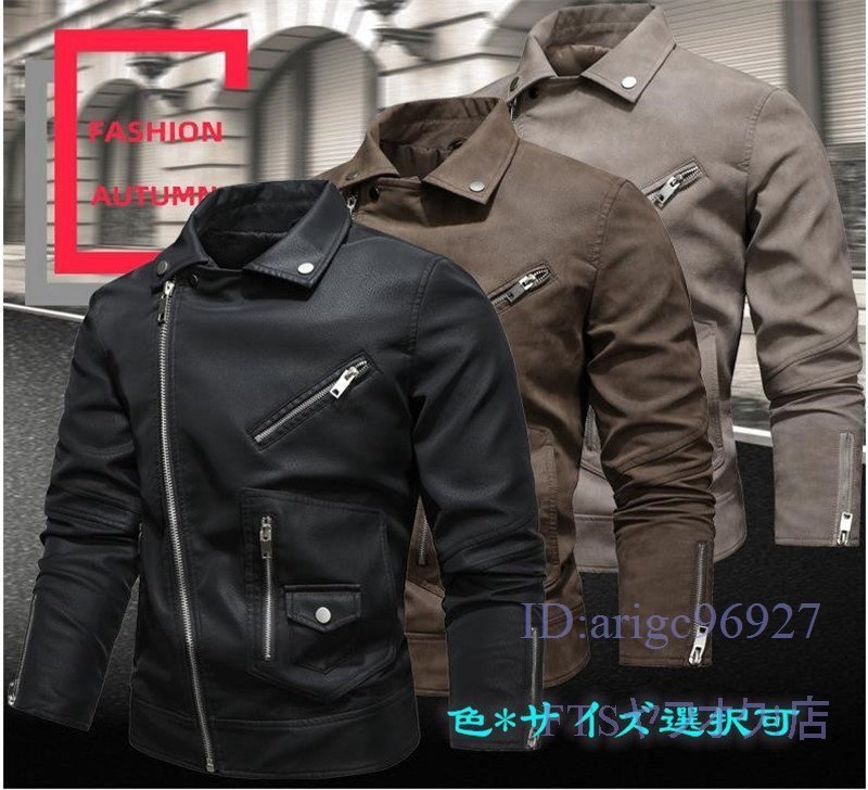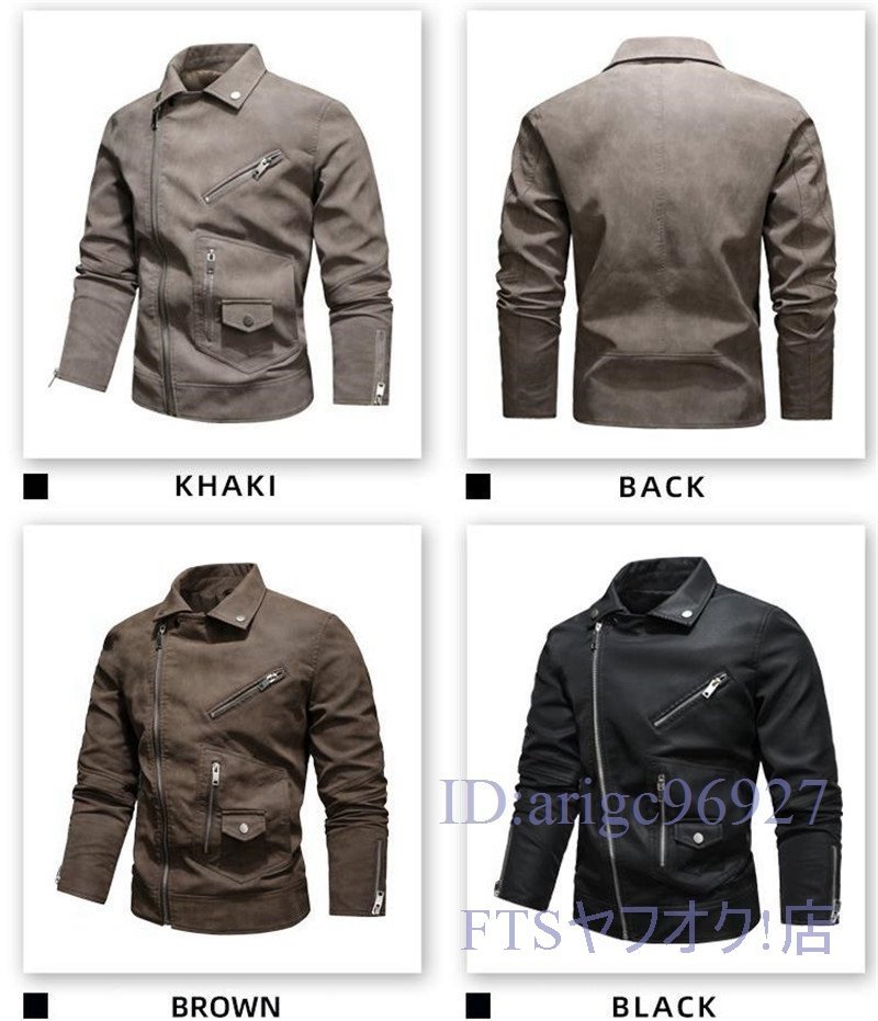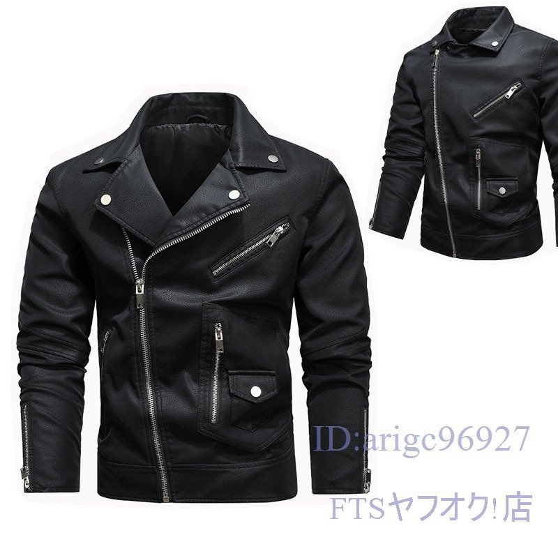U192☆新品ライダースジャケット ☆メンズ 春秋服 トレンド ステキレザー ブルゾン カジュアル バイクウエア【KH-128】クロ S