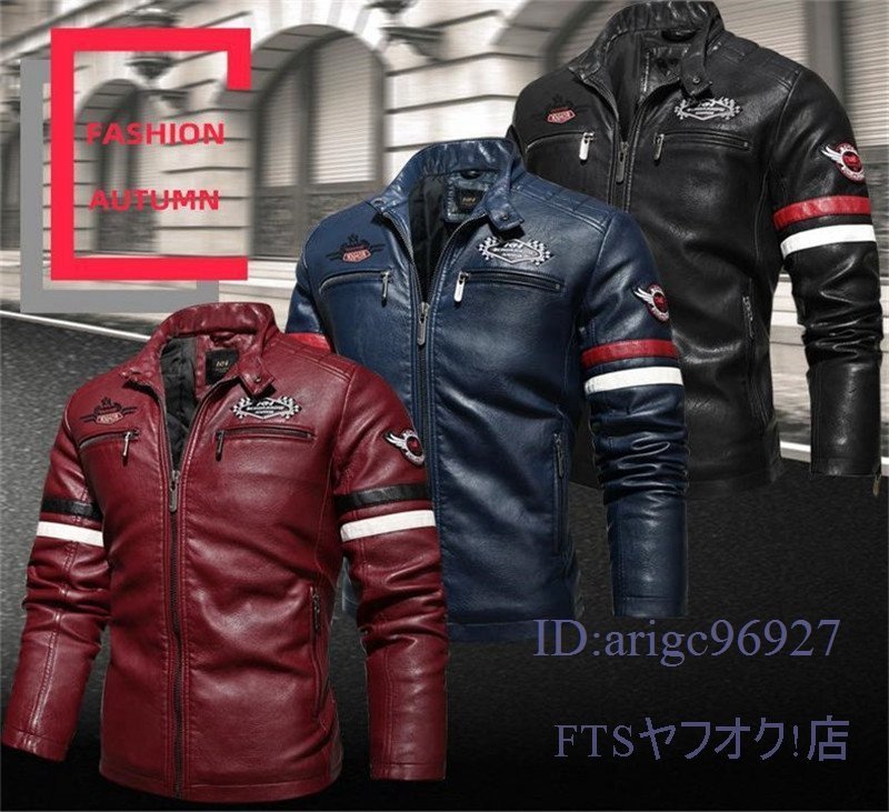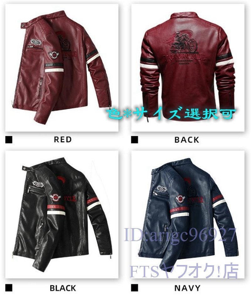 T922☆新品ライダースジャケット メンズ 春秋服 トレンド ステキレザー ブルゾン ジャンパー バイクウエア 黒 L