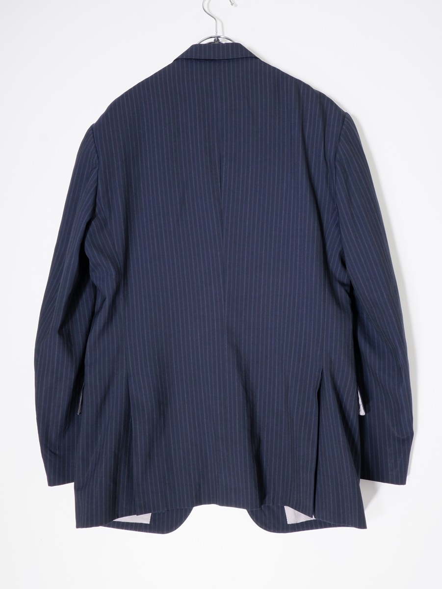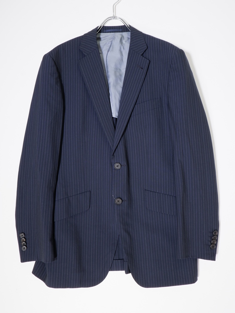【素材感】やや薄手のスーツ地 【透け感】なし 【裏地】あり 【ストレッチ】なし 【開閉デザイン】ボタン 【付属品(取り外し可)】なし 【商品情報】ストライプ柄・2ボタン・背抜き・サイドベント。 |