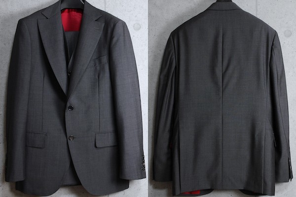 仕様:背抜き仕立て、二つ釦、サイドベンツ、ノータック、本切羽、AMFステッチ、お台場仕立て