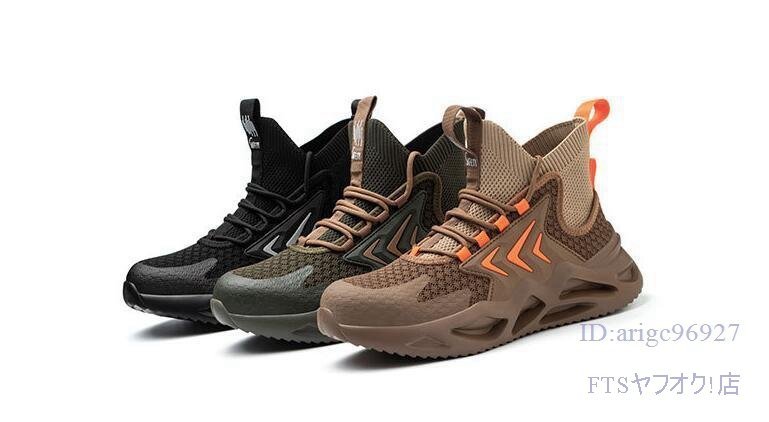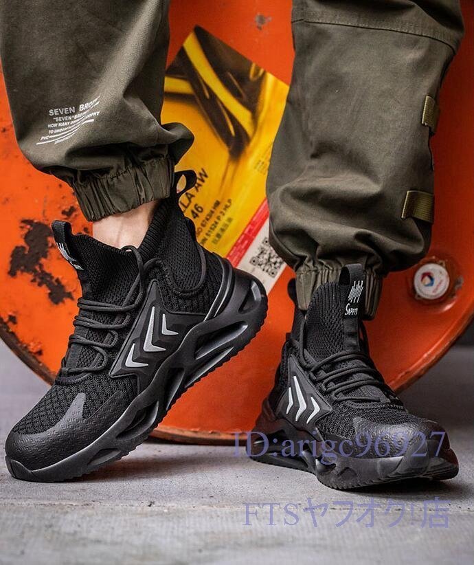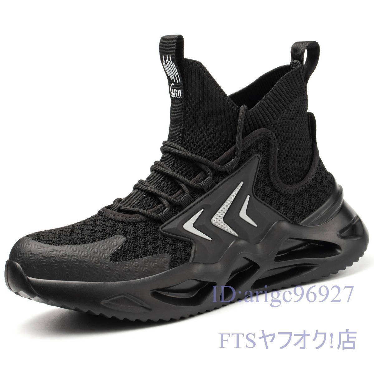 A1146☆新品安全靴 おしゃれ ハイカット スニーカー メンズ 通気 蒸れにくい 作業靴 軽い 黒 鋼先芯入り男女兼用 セーフティーシューズ