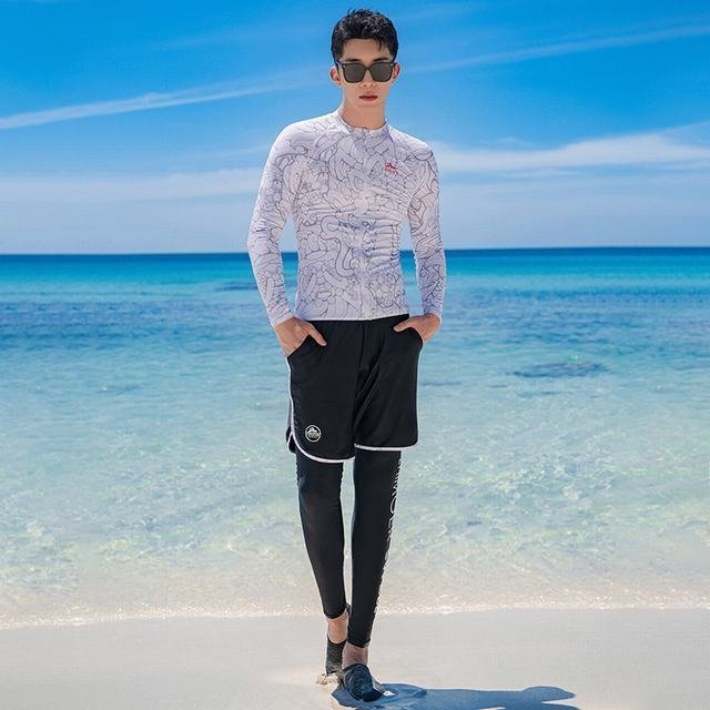 サーフフィットネス水着 3点セット 競泳水着 メンズ 上下セット 体系カバー サーフィン サーフパンツ 水着ペア サイズXL mzm325