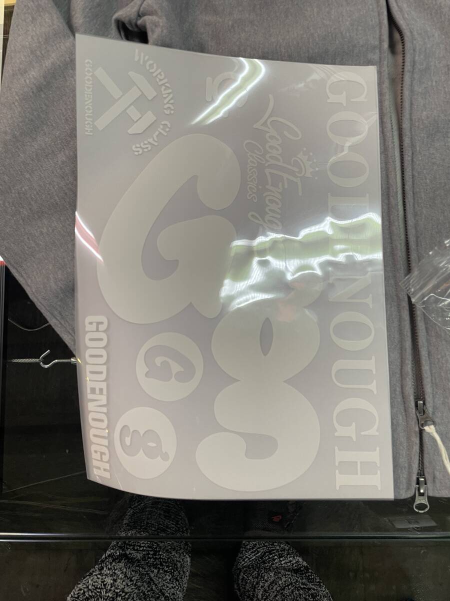 グッドイナフスウェットコーチジャケット 転写プリント付き 2015年 復刻版 1番人気 サイズL カラー グレー未使用品デッドストックです。私個人私物品ですのでよろしくお願いします。