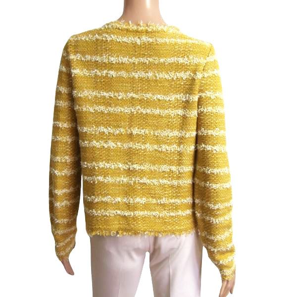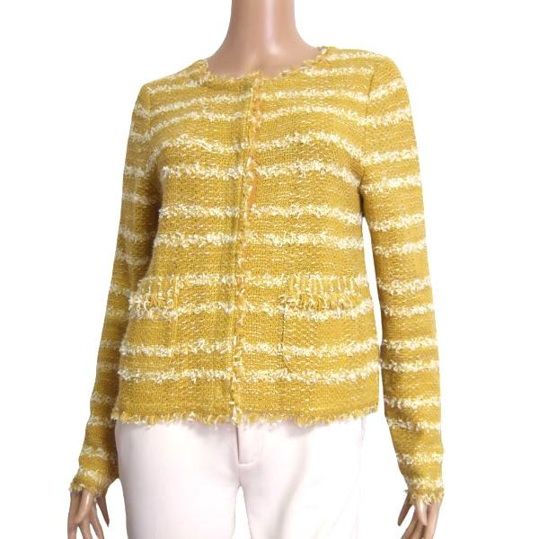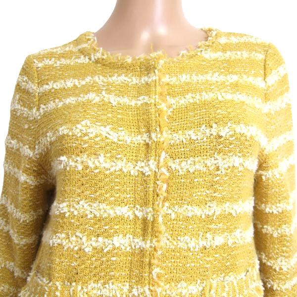 商品詳細 | NO-M6777 ★【ブランド】 * BARNEYS NEWYORK (株)バーニーズジャパン 日本製 ★【特徴】 * 程よくストレッチの効いたコットン系ツイード素材、ふっくらとして軽やかな着心地の素敵なノーカラージャケットです。 縁取りに施したフリンジがアクセント。 フロントフック5ヶ留め仕様。 比翼仕立ですっきりとした印象です。 シンプルなボトムスやワンピースとのコーディネートがおすすめ。 映える大人イエロー系カラーのツイードジャケット、この機会に是非いかがでしょうか♪ ・肩パット× ・裏地× ・伸縮性○ ・ポケット〇 ・季節性 秋冬向け ※状態につきましては当社基準のランク表も合わせてご参考下さい。 | ||||||||||