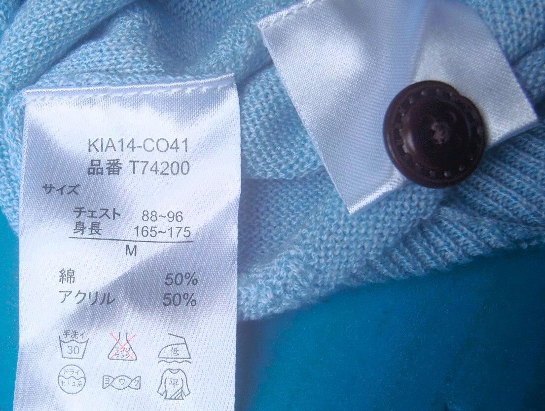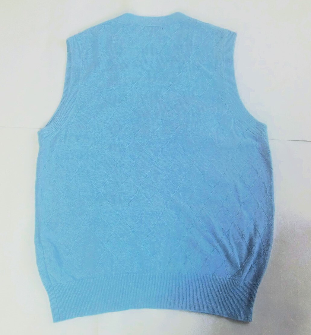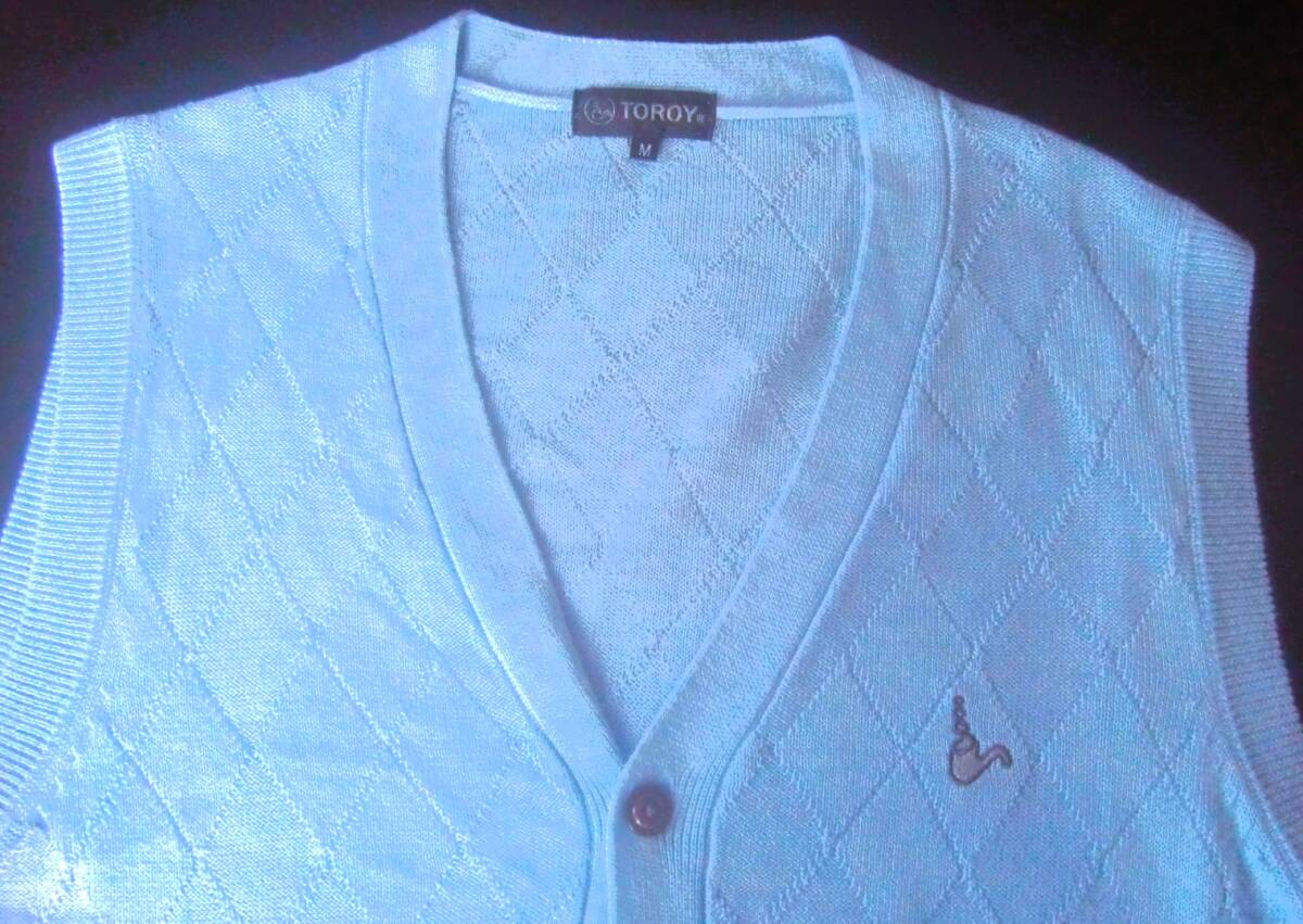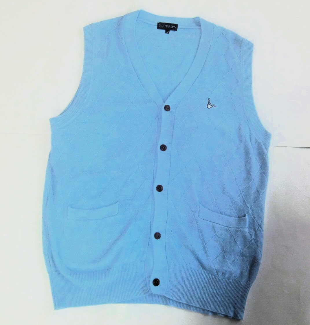 ★♪~【即決】TOROYトロイ 刺繍ロゴ入りVネック ボタンアップ ニットベスト★ポケット付き/メンズMライトスカイブルー/ゆうパケットポスト可~♪★